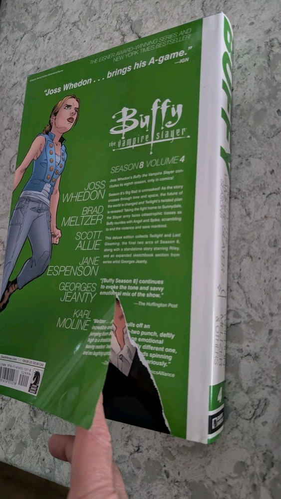 This hardcover edition is a must-have for Buffy fans—stunning art, crisp pages, and a built-in bookmark make it a joy to read. Despite a tiny tear on the dust cover, it’s in perfect condition, capturing the show’s magic in comic form. Joss Whedon’s storytelling shines as Season 8’s epic finale unfolds with Twilight and Last Gleaming. A gorgeous addition to any collection!