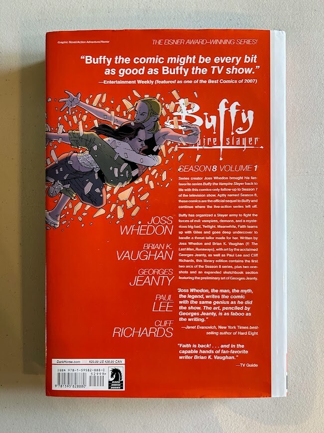 Buffy The Vampire Slayer Season 8 Library Edition Vol. 1 , B-1 The pictures are of the book for sale. Please read the entire listing and look at the pictures to see the actual item offered for sale. Offered for sale is the Library Edition hardcover Buffy The Vampire Slayer Season 8 Vol. 1 in Like New condition (see photos and descriptions). Series creator Joss Whedon brought Buffy back to life with this comics-only follow-up to Season 7 of the television show. This hardcover edition is the official sequel to buffy and contains the first two arcs of the series, plus two one-shots and an expanded sketchbook session featuring preliminary artworks. It continues where the live action series left off. Written by Joss Whedon and Brian K. Vaughan with art by the acclaimed Georges Jeanty! I usually ship within 1 business days of receipt of payment.