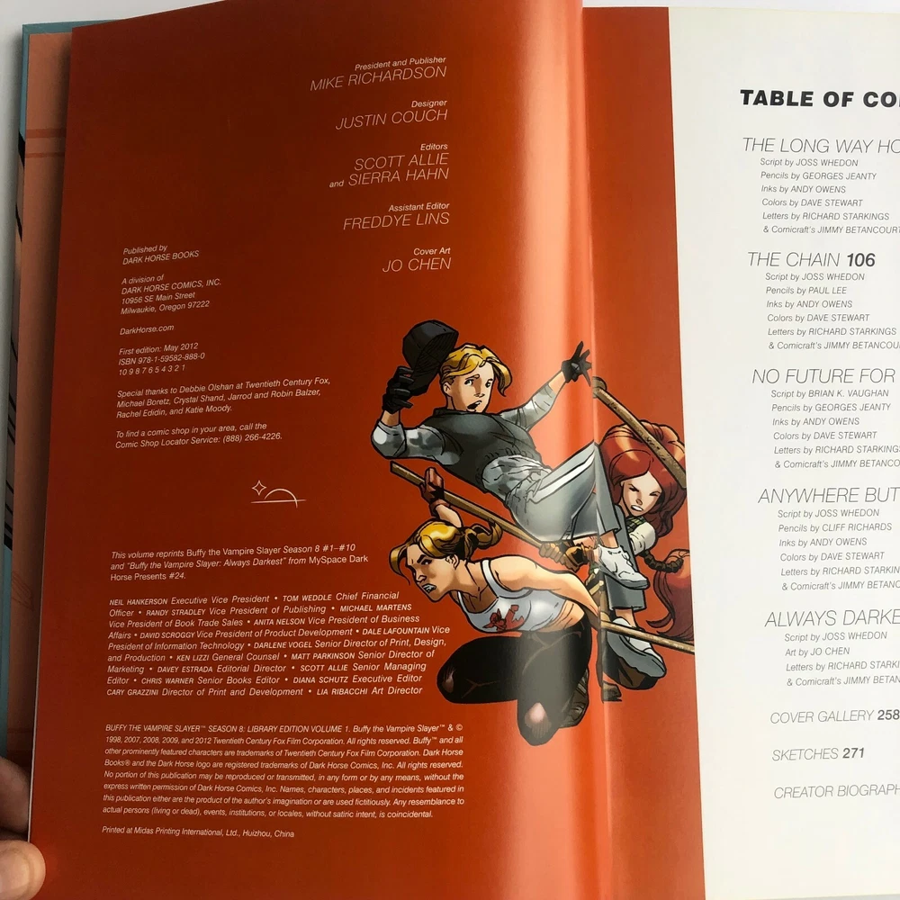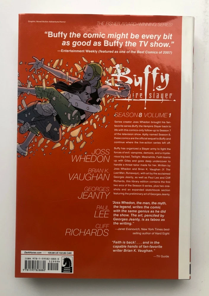 Buffy the Vampire Slayer Season 8 vol1 Hardcover signed by Joss Whedon This is a great compilation of Season 8 issues 1-10 and "Buffy the Vampire Slayer: Always the Darkest" from Dark Horse presents #24 signed by writer and Buffy creator Joss Whedon. Signed by Joss on the inside cover in black sharpie in person at the San Diego Comic Con on Saturday July 14, 2012. The book includes the dust covers as seen in the photos. Included in the listing: • Signed 304 page hardcover • Photo of Joss at the SDCC signing this exact book • the 2012 SDCC Dark Horse Comics booth signing schedule • a Certificate of Authenticity from me All my items are from a non smoking home and are packed with care. 23 years selling on ebay. Buy with confidence!