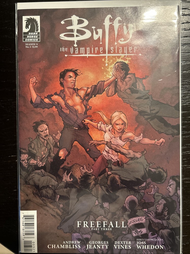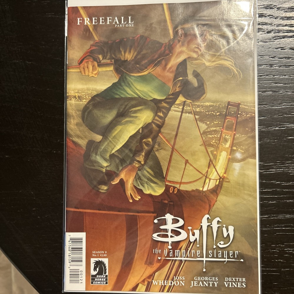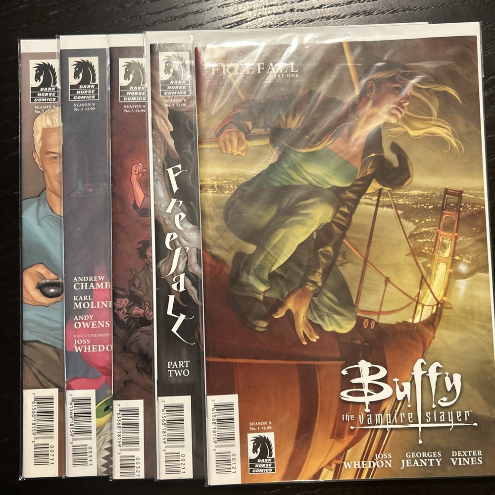 Dive into the supernatural world with this lot of 5 Buffy the Vampire Slayer Season 9 comic books, featuring issues #1, 2, 3, 5, and 7. Published by Dark Horse Comics in 2011, these books continue the legacy of the iconic series, filled with action, fantasy, and horror elements that fans adore. Each book is crafted in English language and boasts the vibrant, colorfully stunning artwork that Jo Chen is known for, complementing the storytelling of Joss Whedon and Georges Jeanty with Andy Owens. Collectors and enthusiasts will appreciate the modern age allure of these comics, presenting a mix of superhero and horror & sci-fi suspense genres in a single lot. This set is an ideal addition for those who cherish the Buffy universe and its rich tradition in US comics. Whether you’re looking to expand your collection or just enjoy the escapades of one of television’s most beloved heroines, these comic books are sure to satisfy your cravings for excitement and adventure.