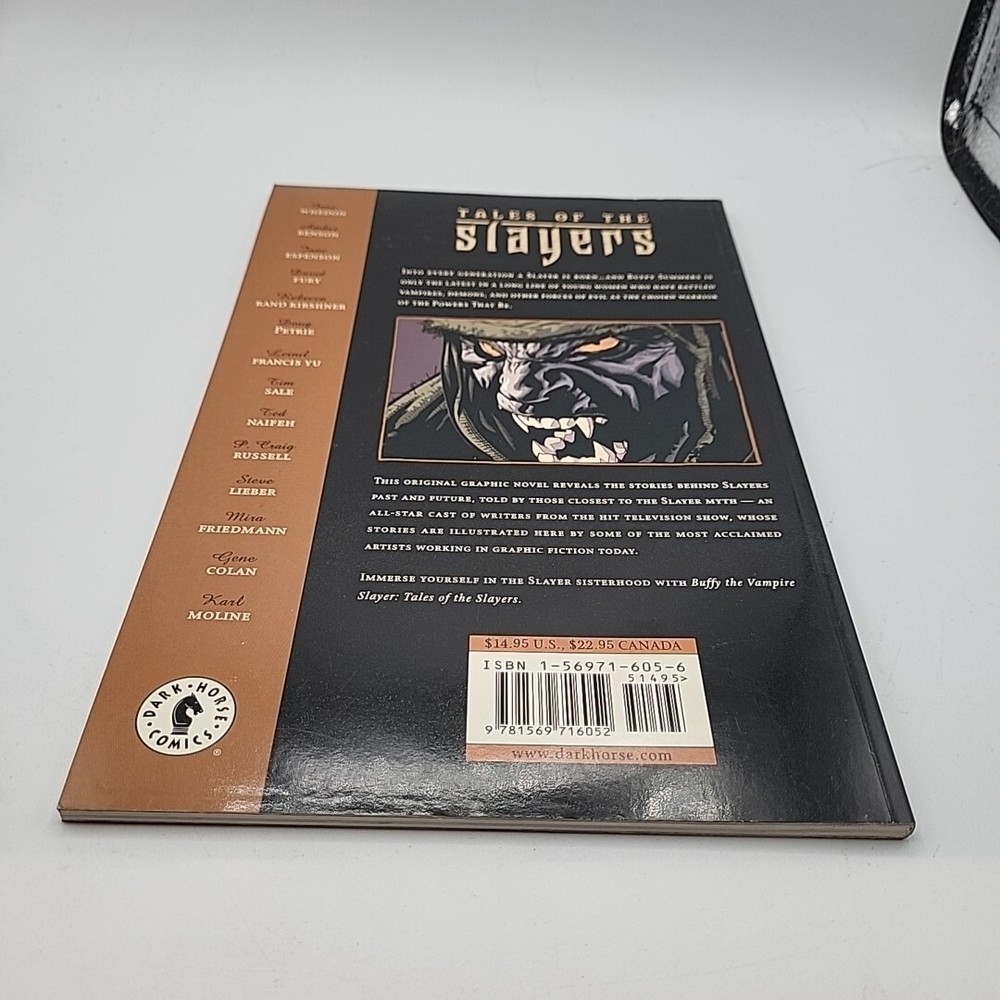Buffy the Vampire Slayer: Tales of the Slayers TPB 2001 Joss Whedon Dark Horse DARK HORSE COMICS (W) Amber Benson & Various (A) Ted Naifeh, Tim Sale by JOSS WHEDON, TIM SALE, GENE COLAN, P. CRAIG RUSSELL, and others Buffy the Vampire Slayer is the latest in a long tradition of young women who've been trained to give their lives in the war against vampires. We've gotten glimpses of these other women over the years on T.V., in comics, and in books. Now for the first time, the writers from the television series, including the show's creator, Joss Whedon, and one of its stars, Amber "Tara" Benson, present the tales of these girls, with the help of comics' greatest artists. Gene Colan, co-creator of Marvel's Blade and Tomb of Dracula , returns to Dark Horse for the story of a young girl in 1970s New York, battling vampires. Tim Sale, artist of recent epics Batman: The Long Halloween and Superman for All Seasons teams with Joss Whedon for a grim tale of a medieval slayer. American comics legend P. Craig Russell ( Dr. Strange , The Ring of the Nibelung ) and international rising star Mira Friedmann ( Actus Tragicus ) also join the stellar lineup. WELCOME TO THE INSTITUTE FOR HOMELESS ROBOTS. I, the illustrious Professor Robot Hands, will be your guide over the next few paragraphs. Please feel free to pretend to enjoy yourself. Here at the Institute we use use every square inch of our sprawling estate to house our treasures until they find their "Forever Home". Many of the curiosities we have accumulated over the years are stored in the "ATTIC OF HORRORS" with its aptly named "Shelves of Slight Discomfort"...some are sent to live in the "Hall Closet of Partially Alarming Clutter" or the "Garage of Unspecific Dread" and some of our long term guests are housed in the newly rented "Corner Office of General Unease". Either way your item is heard about, seen, driven to, ordered, found, bargained for, obtained, traded for, bought, delivered to, received by, signed for, inventoried, scrubbed, cleaned, powered up, repaired, photographed, cropped, rotated, uploaded, listed, shelved, picked, bagged, packed, labeled and shipped by one guy...Professor Robot Hands. If you think you might want to adopt multiple items, just send me a list of titles or item numbers and I can make special listing for you with them all together. You absolutely will not get combined shipping unless you specifically ask for it and it is agreed to...most likely it will. Please ask before, not after you buy, before. Is all this glorious exposition too much for you to handle? Does it just make you want to send me a passive-aggressive message so you can tell me about how you can't be bothered to read any of it? Yeah? Well, you should probably just move on. It is likely we don't see eye to eye and that rarely works out for either party....besides this really was a trap. Now more words! I pride myself on my expert ability to package and ship items safely. I employ both new & used boxes. Depending on the availability, a larger item may arrive in a double taped new or used cardboard box with; air-bubbles, peanuts, padded mailers & packing paper. I work with whatever I have on hand and that changes all the time. I try to re-use as much packaging product as I can. I hope that you can help re-use some of it too. If you need extra attention given to your package because you have a small mailbox, live in an apartment building or have a carrier that thinks mail requires bending as part of the delivery process, just let me know. If need be I can get some sheet metal. Returns go back to the Institute at same address they came to you from. If I find that I am at fault for damage or mis-shipment, I of course will take care of it. Any item refused, marked return to sender, undeliverable, vacant, etc. or comes without tracking will be abandoned or ignored unless you make prior arrangements with me. Don't try a phony return with me I will report you and withhold as much of your refund as I can. I buy, scarf, obtain, scrounge & hoard jigsaw puzzles by the HUNDREDS from church, garage, community sales and such and they may have musty, basement or attic like odors. ALSO there is NO feasible way for me to count each and every one of them. If you are an avid puzzler you already know that counting the pieces is not a guarantee of completeness anyway. If you do buy a jigsaw puzzle and find there is a missing piece(s), please just let me know and I will be happy to take care of it. Just send me a picture of the "completed" puzzle with the missing piece(s). Buying a puzzle from me means you acknowledge and consider each and every puzzle to be uncounted with a possibility of being incomplete...it does happen although it is quite rare. Keys are not implied to be either valid or invalid on any used games or software. Vintage software and magnetic media are sold for their pretty, pretty collectible packaging/art work and not guaranteed to have perfect image or sound quality. Music, game and other discs may be run on a professional buffer machine and then described as LN. Used & LN HC, TPB, DVD & BluRay games, movies and other digital media may or may not have intact or unexpired digital download codes or coupons. Some items may be completely disassembled or partially disassembled to ensure they arrive safely and unbroken. Batteries will not be included because they all over time leak and corrode electronics...don't store your stuff at home with batteries in it. My items come from many and varied sources (it would be an impossibility to tell you the smell pedigree of every item I have for sale) sometimes but not always including; the flatulent, smoking households, homes with weird pets, households with different gods or people that cook gross food. These theoretical "bad" smells are subjective. If you have a sensitive sniffer...don't look at me...blame your own nose. Making a best offer? It is called BEST OFFER not WORST OFFER. Don't bother with less than half. I kn