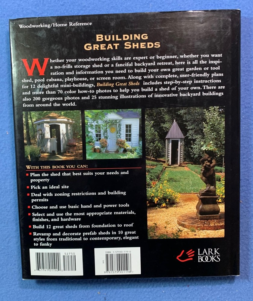 This book is a fantastic resource for anyone looking to build their own shed or backyard structure! Packed with creative designs and clear, step-by-step instructions, it makes DIY projects feel approachable. From garden sheds to playhouses, the variety of ideas is impressive. The hardcover ensures durability, and the illustrations are super helpful. Perfect for beginners and seasoned builders alike—highly recommend!