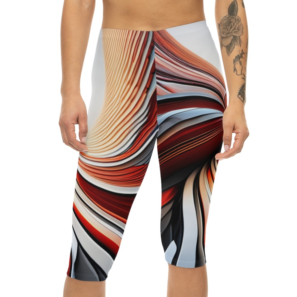 Capri leggings are comfy, capri leggings are stylish - the perfect chameleon for all occasions can now be fully customized with your designs. Made with anti-microbial polyester spandex that is both moisture-wicking and breathable, these leggings come with a mid-rise waist and are the perfect choice for lounging at home, running, or sweating it out at the gym. Material: 95% moisture-wicking polyester, 5% spandex Printed-in size and care label White seam stitching Skinny fit Assembled in the USA from globally sourced parts XS S M L XL 2XL Waist width, in 13.46 14.49 15.47 16.73 18.23 19.72 Outseam, in 25.12 25.47 25.75 26.10 26.50 26.97 On May 8, 2024 at 20:57:56 PDT, seller added the following information: Track Page Views With Auctiva's Counter