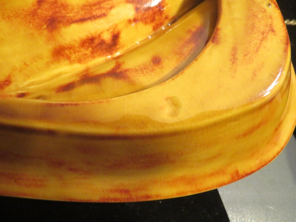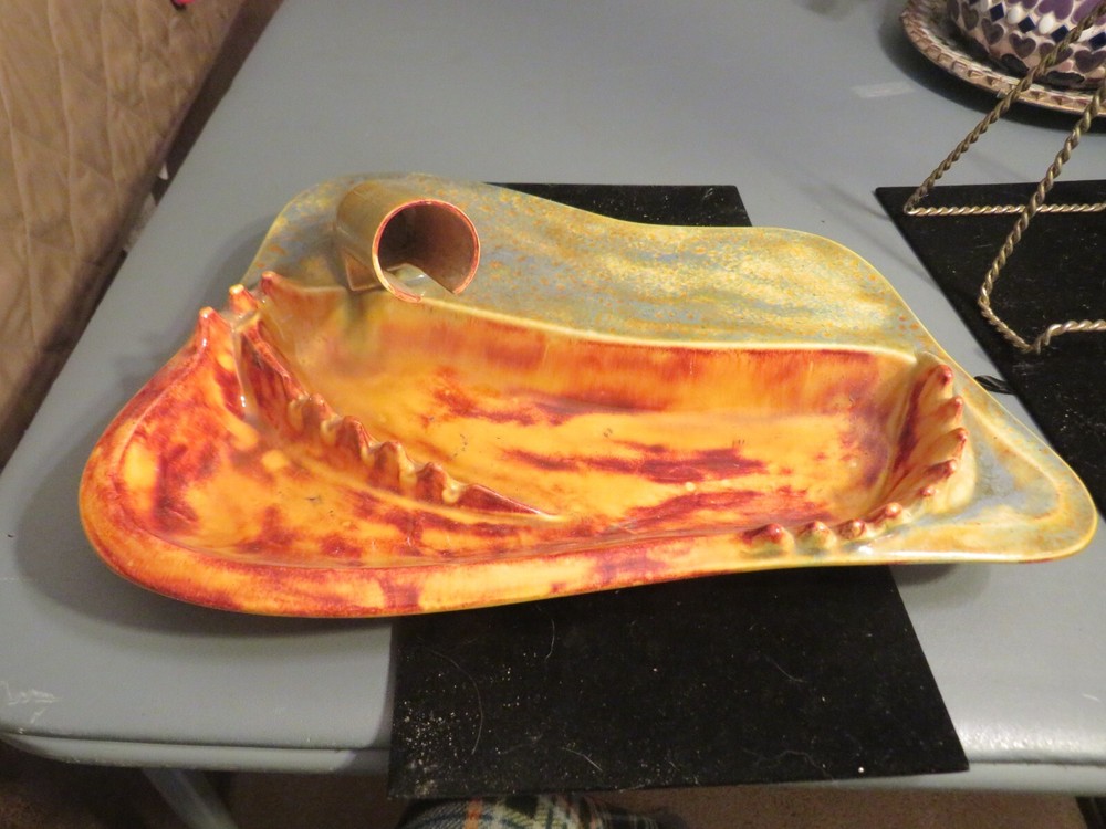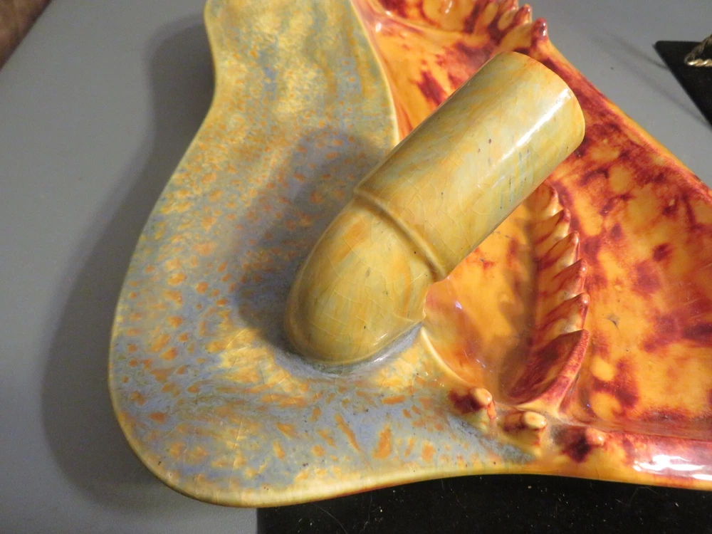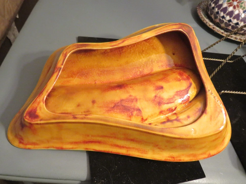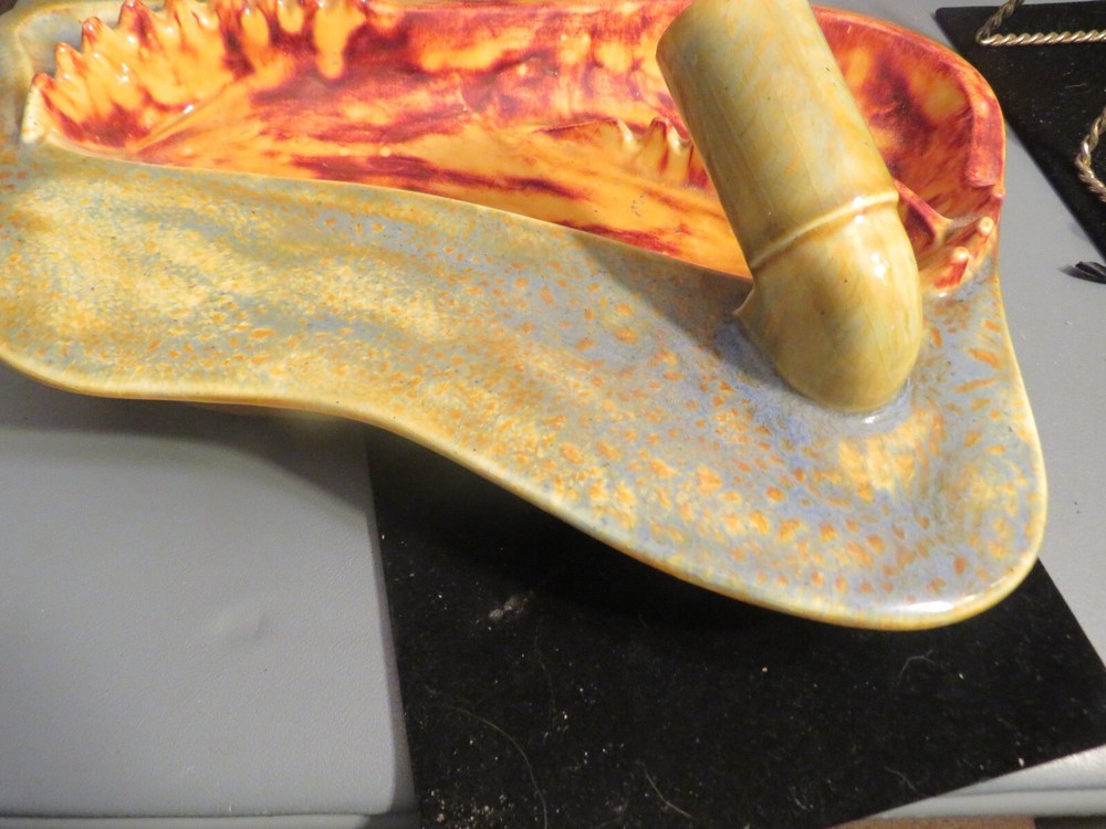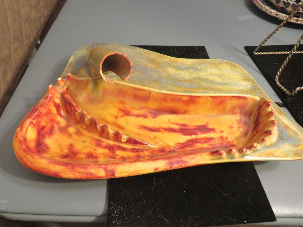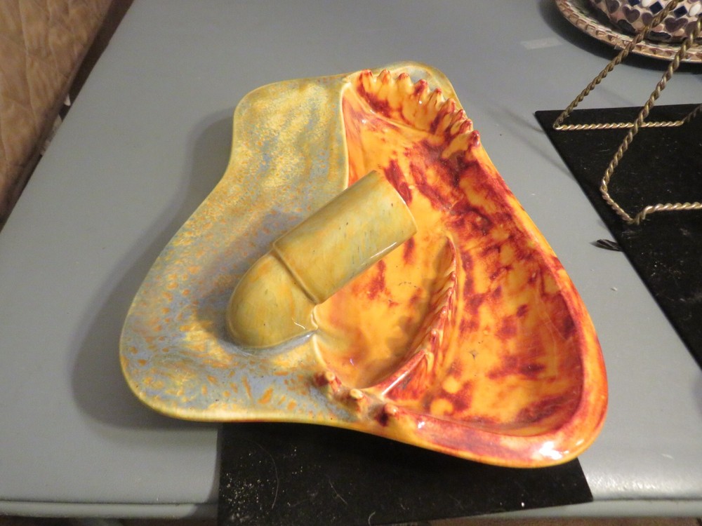 THIS AUCTION IS FOR A CALIFORNIA POTTEY ASHTRAY MID CENTURY MODERN ORANGE TRAY. IT IS IN EXCELLENT CONDITION. ITMEASURES 14 INCHES LONG. BUYER PAYS ACTUAL SHIPPING AND INSURANCE. This piece was purchased from the estate of American actress Elaine Devry who had at least 14 film credits from 1953 to 1999. She was born in Compton in 1930 and passed away in southern Oregon in September of 2023. She was married for 6 years to Mickey Rooney and then for a time to another actor, Will J. White. This piece is in excellent condition with no chips, cracks or crazing. Buyer pays actual shipping costs. **AUCTION ** Preview Today! Estate of American... starts on 4/12/2024 [link removed by eBay]
