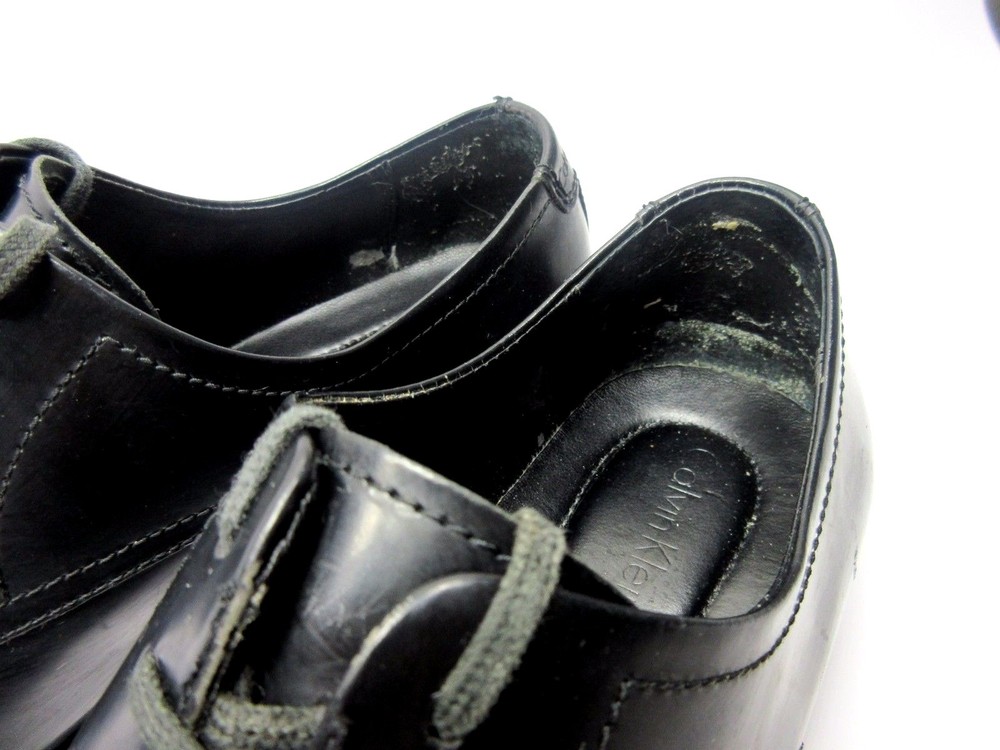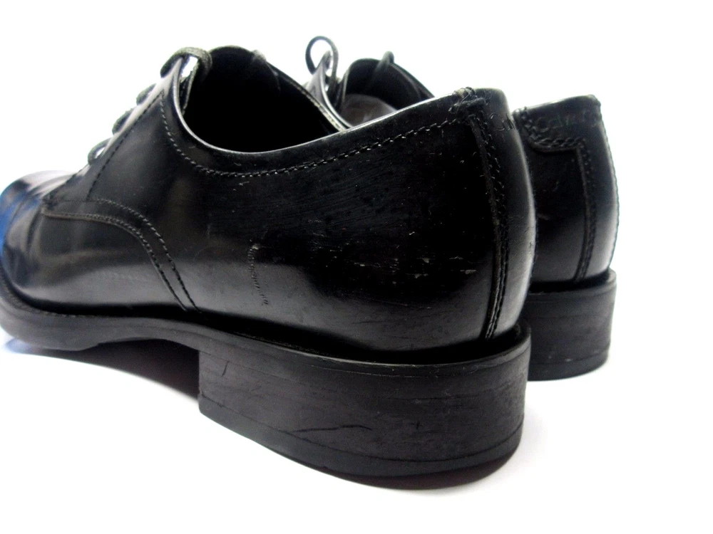 PRE OWNED MEN'S CALVIN KLEIN OXFORDS LACE UP BLACK DRESS SHOES SIZE : 7 M THESE SHOES ARE IN GREAT CONDITION....!!! LITTLE SCUFF ON HELLS AND LINING - SEE PICTURES PLEASE VIEW THE PICTURES........IT SAYS IT ALL....!!! FEEL FREE TO ASK ANY QUESTION 3557 - 042