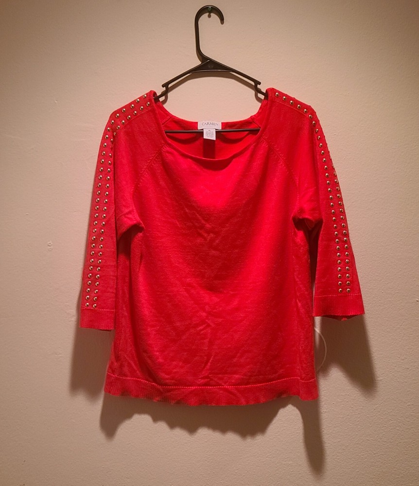 CARMEN Marco Valvo Mid-Sleeve Business Casual Womens Shirt Size XL. Womens size XL- carmen marc valvo Tags removed- in great condition- in tread damages or rips/holes. Rayin and nylon materials- soft feel I will ship within 24 hours of order of order being placed. Check out the rest of my page, message me to bundle items and save on shipping.