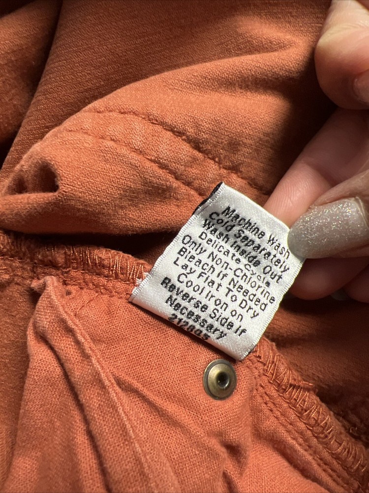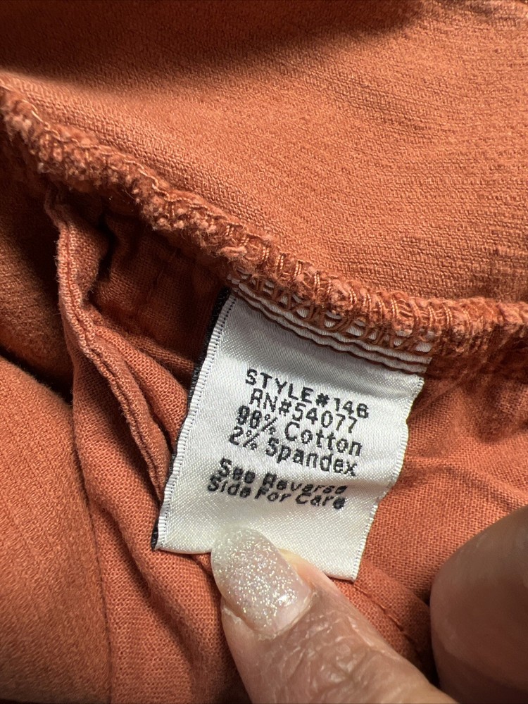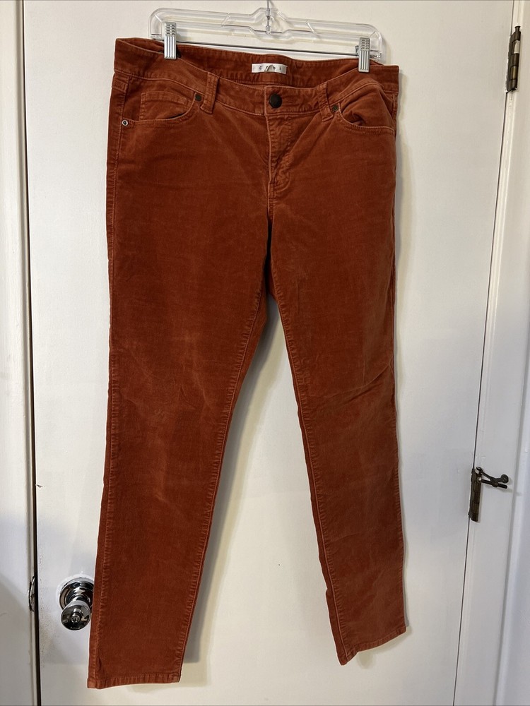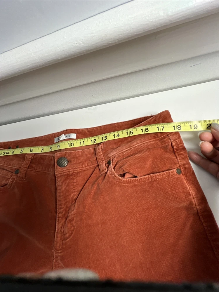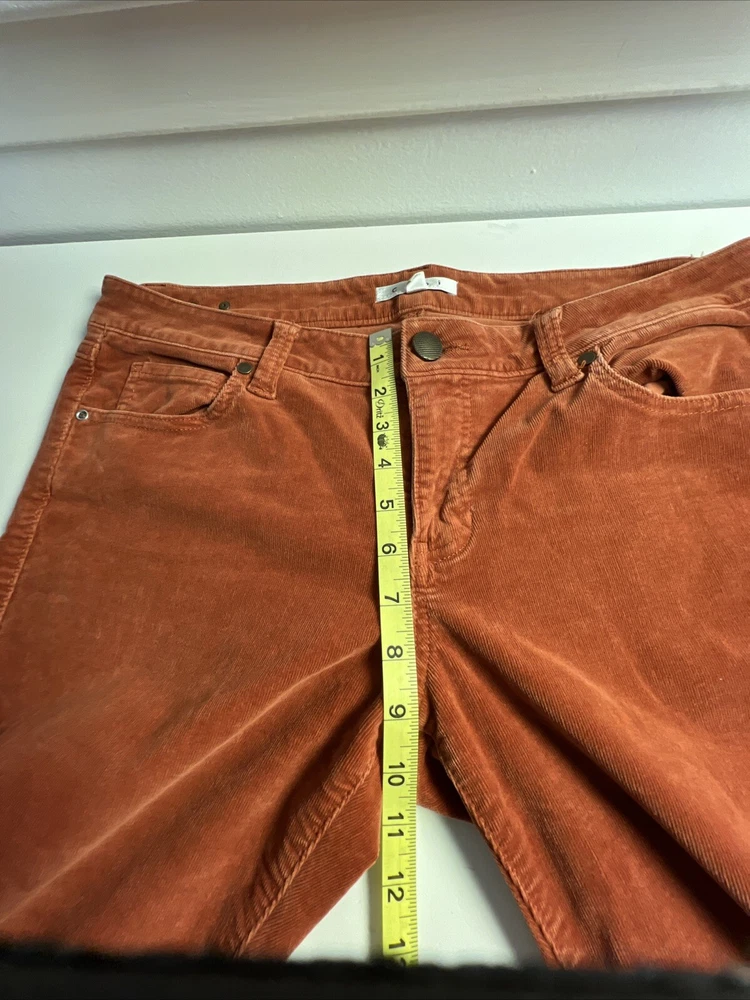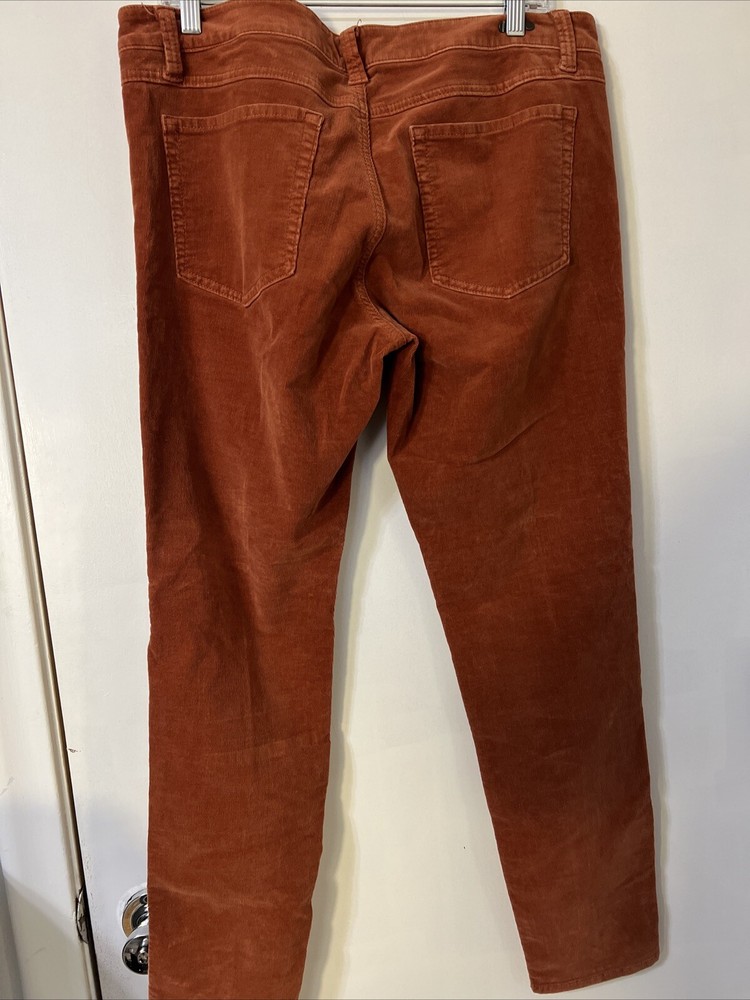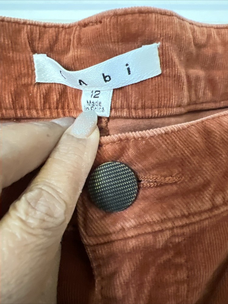 Elevate your wardrobe with these stylish CAbi pants in a beautiful rust orange brown color. These skinny leg pants feature a mid-rise waist and are made of stretchy corduroy fabric that flatters your figure. The ankle length and skinny leg style add a touch of sophistication to any outfit. These pants are perfect for any occasion and can be dressed up or down. The CAbi brand is known for its quality and attention to detail, making these pants a great addition to your collection.