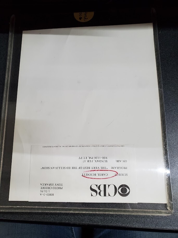 CBS The Ed Sullivan Show 1991 Carol Burnett With authentic paper from CBS...