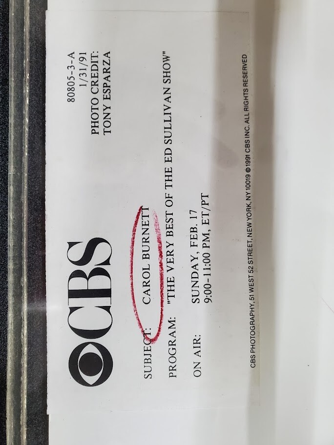 CBS The Ed Sullivan Show 1991 Carol Burnett With authentic paper from CBS
