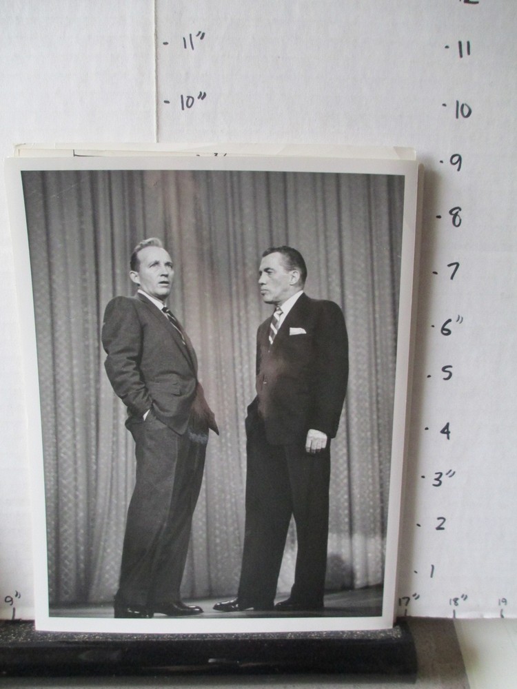 This vintage CBS TV photo from the 1950s captures a classic moment with Ed Sullivan and Bing Crosby on *Toast of the Town*. The 7x9 or 8x10 size is perfect for collectors, and the condition is excellent with authentic studio markings on the back. A must-have for fans of golden-era television!