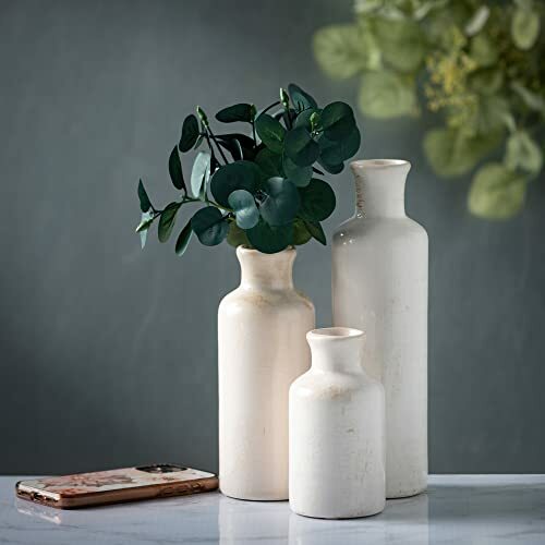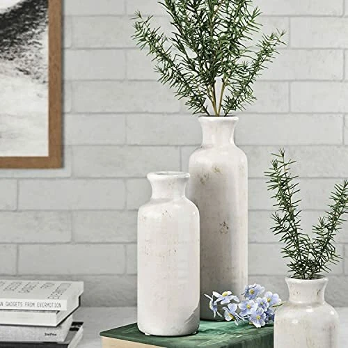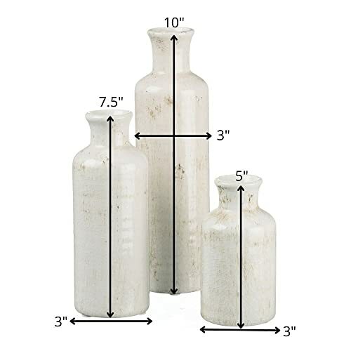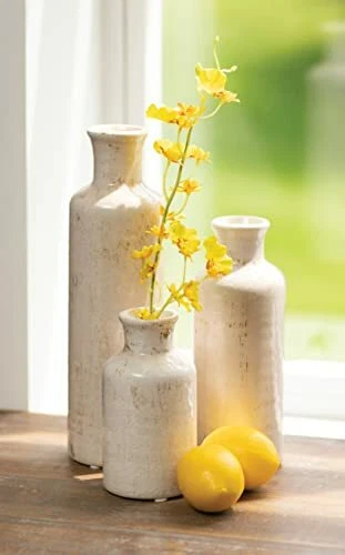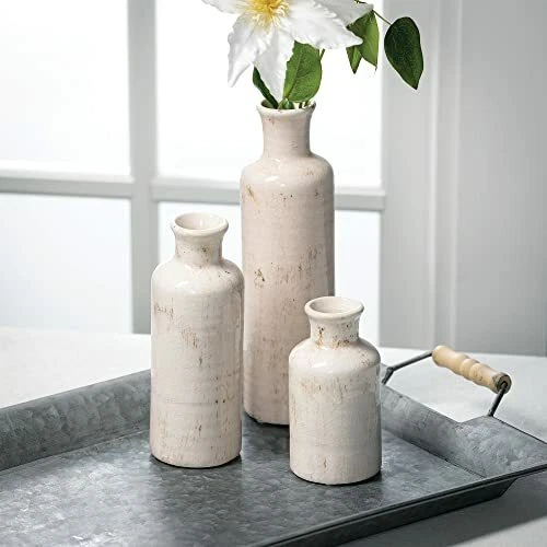 Contact Us Add to Favorite Welcome to our store Free Shipping 30 Days Return eBay Money Back Guarantee Secure Shopping Sullivans Ceramic Vase Set - 3 Small Vases, Rustic Home Decor, Modern Farmhouse; Ideal Shelf Décor, Table Décor, Bookshelf, Mantle, Entryway- Distressed White (CM2333) ABOUT THE PRODUCT Decorate Your Home with Personality – Showcase your style with this decorative distressed off-white ceramic vase set of 3. Create a space in your home with refined rustic, yet elegant and effortlessly beautiful home décor pieces Multi-Purpose Decorative Ceramic Faux Floral Vase Set – (measuring 3”L x 3”W x 10”H; 3”L x 3”W x 7.5”H; 3”L x 3”W x 5”H, ) This decorative vase set can be used in many different ways. The distressed design is so stunning you can use it on its own for a beautiful statement piece or add in faux florals, stems, bouquets, and greenery for a pop of color. Perfect for your tabletop, shelf in a family room, mantel, dining room, bathroom or covered patio. Long Lasting Quality – Crafted from 100% ceramic, this set is sure to set the stage anywhere in your home. This durable, high-quality, trend lasting vase set will keep your décor looking fresh and up-to-date year after year. Create a Beautiful Centerpiece – This decorative off-white ceramic vase set will fit in with an abundance of styles; modern farmhouse, rustic, classic charm, country, and elegant yet simplistic. The versatility of this faux floral vase set makes it perfect to use for wedding, bridal and baby showers. Bring this out for your next gathering for an instant, stunning centerpiece Showcase Your Style with Confidence – Decorating your home brings your personality to life. This stunning ceramic vase set works well with faux florals, to take your décor to the next level, and wow your guests. The crackled rustic design is so detailed you can even set it out on its’ own. With its’ elegant, timeless look, this set will look beautiful however you decide to use it (From the manufacturer) Product Description Sullivans Ceramic Vase Set - 3 Small Vases, Rustic Home Decor, Modern Farmhouse; Ideal Shelf Décor, Table Décor, Bookshelf, Mantle, Entryway- Distressed White (CM2333) All three neutral bottle-style pieces feature 1 inch openings, perfect for a favorite stem or to simply stand alone. Waterproof. For more information about the product, please visit the manufacturer's website. TERMS OF SALE Cancellation Per eBay policy regarding cancellation, we are required to accept a cancellation within 1 (one) hour of the time you placed your order. Please understand, that once we process your order, it is very difficult to reverse it, and impossible once we shipped the item. If you need to cancel after your hour expires, you will have to follow the steps laid out in the return policy, once the item arrives. Shipping We offer free shipping with standard shipping. Timeline of delivery time is 4-8 business days including the handling time. We do not offer combine shipping service. Please note, most of our products ship directly from our different suppliers across the United States. Please make sure, to provide the correct shipping address during checkout, as the address cannot be changed after checkout. Double check it to be sure. We have no way of knowing in advance, if the address is incorrect. So we will not take responsibility for any incorrect or undeliverable addresses. Return Policy Y ou have 30 days from the date you received your purchase, to return it for refund, subject to the following conditions: "The date you received your purchase" means, specifically, the date the carrier has on record that they delivered the package to your house. If you are not certain of this date, check online with the tracking number, to see what date is on record for the delivery. The item is considered "returned" on the date the carrier has on record, that they delivered the item back to our warehouse/supplier. We will not allow a refund unless the date occurs before the 30 days have elapsed, so it is important that you act promptly, or else we cannot guarantee the refund. In this case, we may refuse the returned package. ALL returns, regardless of reason, must be in the ORIGINAL packaging, UNLESS the packaging was so badly damaged in shipment that they are no longer usable for that purpose. IF THIS is the case with your shipment, we will need PHOTOS of the damaged package. You should take these photos from several different angles, BEFORE you try to open it. Return unsatisfactory products If you are not satisfied with your purchase or if you just changed your mind, you can return the product, and you must pay for return shipping, and we will also charge back the original shipping that we already paid when we shipped your item. And you must return the item in new or unused, unopened, unmarked, unwashed or original condition with all original material included with the shipment. All returns must be requested through eBay, for return authorization and shipping address. Please note, never send a return without opening a return request , as the return address is different from the original shipping facility address. Undeliverable package The honest truth is that we have no way of knowing if your address is correct. Only you can give us your correct address. So if your address is wrong, or there is no safe place available at your shipping address when the courier tries to deliver your package, we will not accept responsibility for that, so MAKE SURE your address info is correct. Otherwise, we will charge you the original shipping that we paid for your shipment. Feedback from you Your feedback is very important to us. As long as you are happy with your purchase, we would be grateful if you could please leave positive feedback for us. If there is a problem or you are not happy with your purchase, please let us know first and give us the opportunity to resolve it for you. About us Welcome to our store, We se