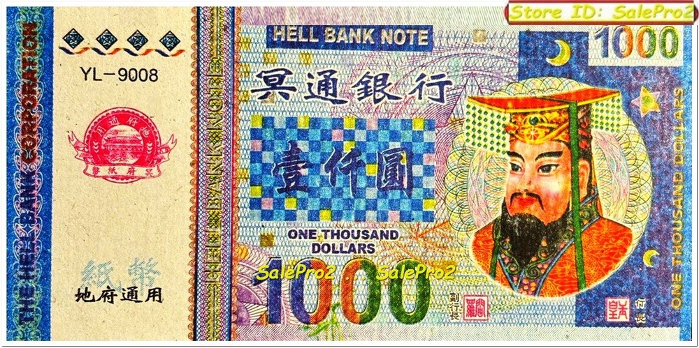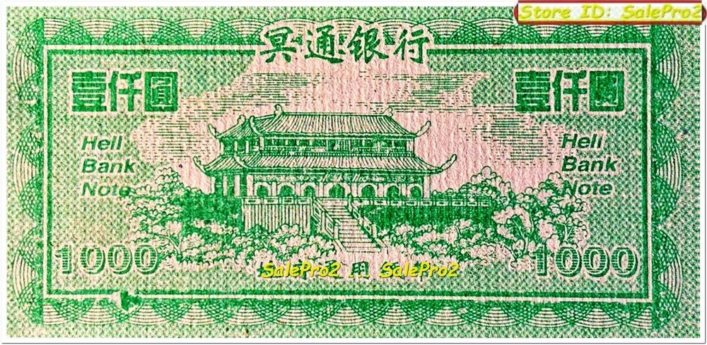 CHINA HELL BANK $1000 DOLLAR JOSS PAPER CHINESE EMPIRE HELL NOTE BANKNOTE UNC OFFICIALA CHINA HELL BANK ** $1000 DOLLAR JOSS PAPER ** CHINESE EMPIRE HELL NOTE BANKNOTE HELL NOTE IS IN NEW & UNCIRCULATED CONDITION Hell Notes, in many Chinese religious traditions, used usually beneath the earth, of the unredeemed dead or the spirits of the damned, in the grave right beside the dead person's body, to have some cash money, to live well & spend in the next Life Shipping : 1.95 CANADA, 2.55 USA & 3.95 International (Worldwide) (depending on the country), Worldwide shipping in Safe & Secure packaging ~ Additional item shipping fee is 50¢ (Canada & USA) as well as (International) ~ We ship all orders within 24-48 hours as soon as your payment reaches us cleared All pictures are Watermarked with our User id or Store name to prevent image piracy Paypal is our online payment method, other methods are available during the checkout