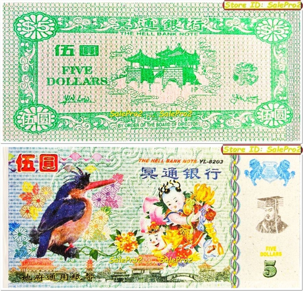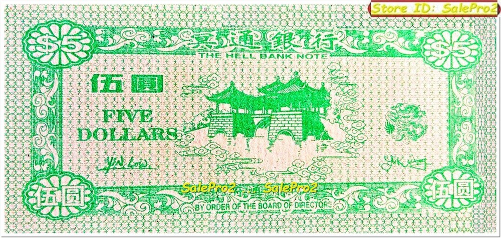 CHINA HELL BANK $10 JOSS PAPER CHINESE EMPIRE BIRD YL-8204 HELL NOTE BANKNOTE UNC OFFICIALA CHINA HELL BANK ** $5 DOLLAR JOSS PAPER ** CHINESE EMPIRE BIRD HELL NOTE BANKNOTE HELL NOTE IS IN NEW & UNCIRCULATED CONDITION Hell Notes, in many Chinese religious traditions, used usually beneath the earth, of the unredeemed dead or the spirits of the damned, in the grave right beside the dead person's body, to have some cash money, to live well & spend in the next Life Shipping : 1.95 CANADA, 2.55 USA & 3.95 International (Worldwide) (depending on the country), Worldwide shipping in Safe & Secure packaging ~ Additional item shipping fee is 25¢ (Canada & USA) as well as (International) ~ We ship all orders within 24-48 hours as soon as your payment reaches us cleared All pictures are Watermarked with our User id or Store name to prevent image piracy Paypal is our online payment method, other methods are available during the checkout