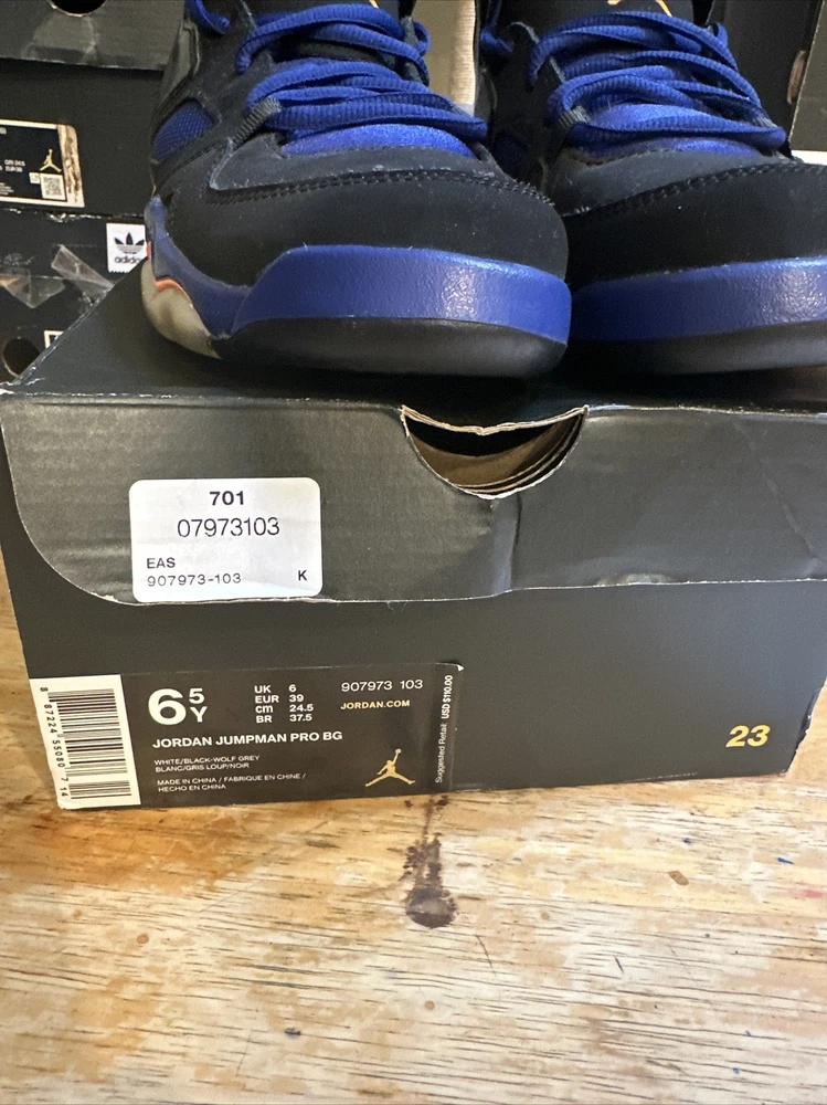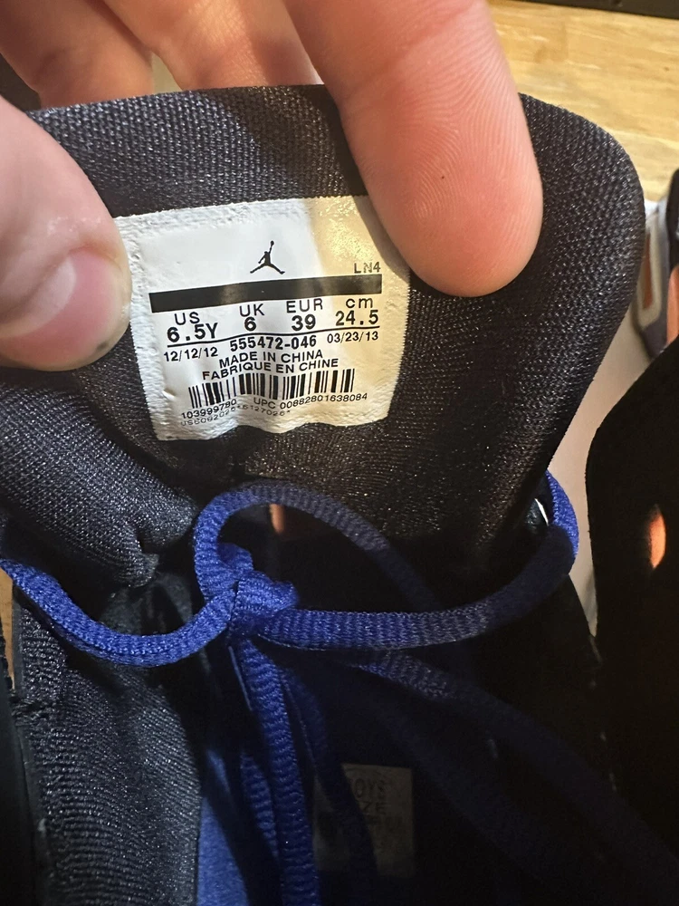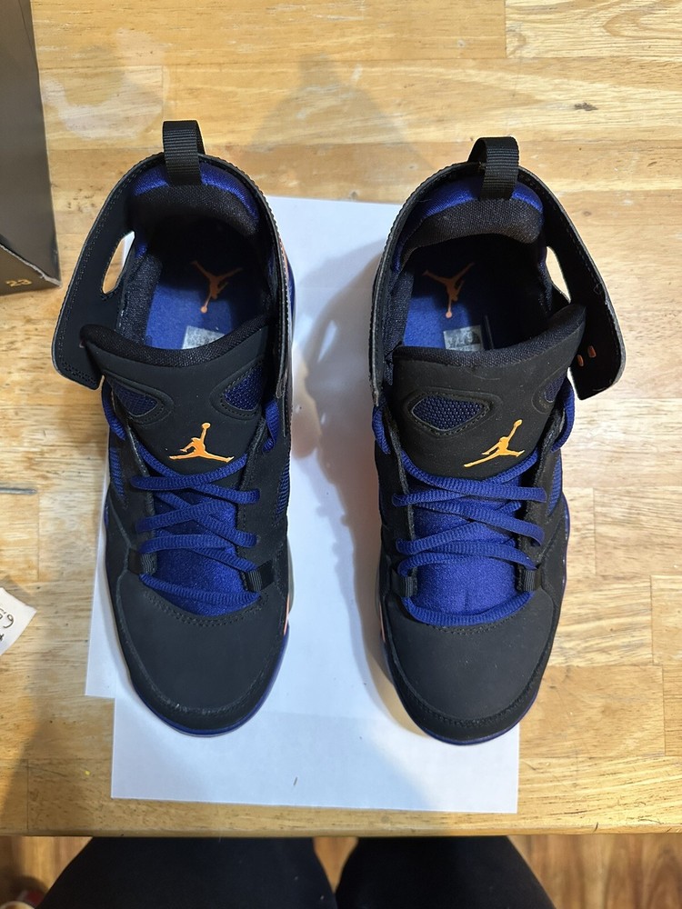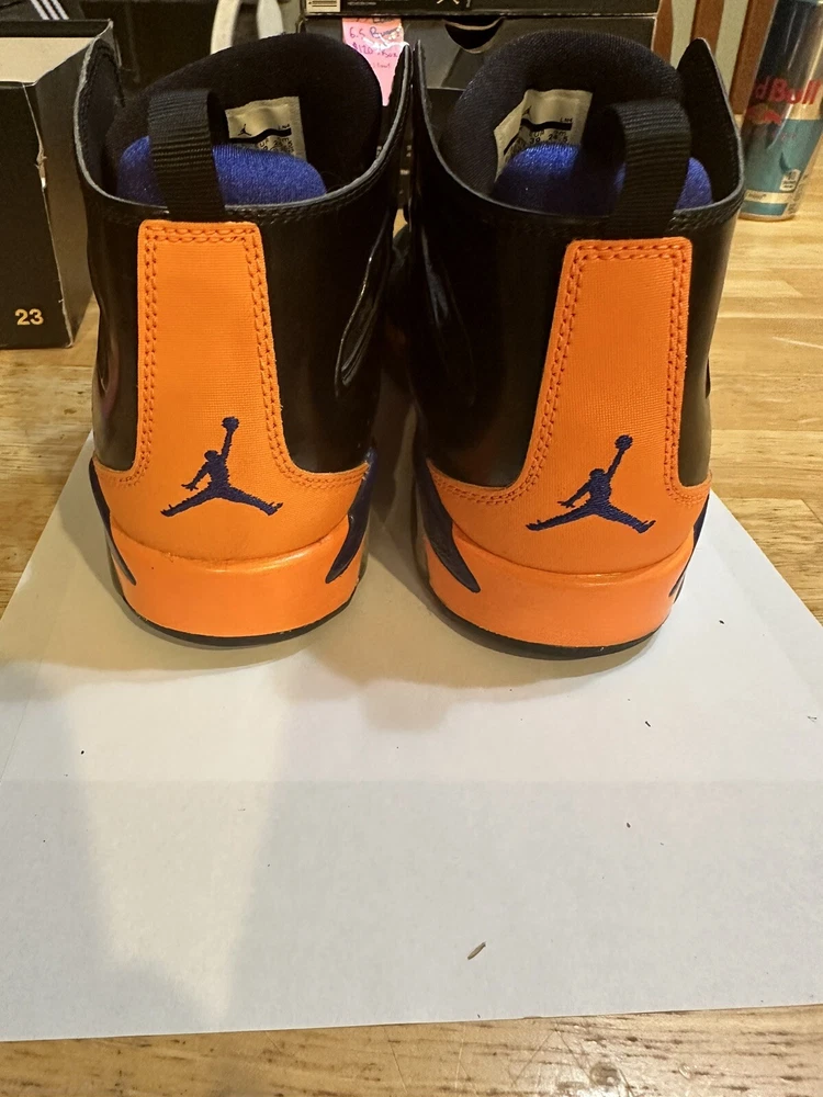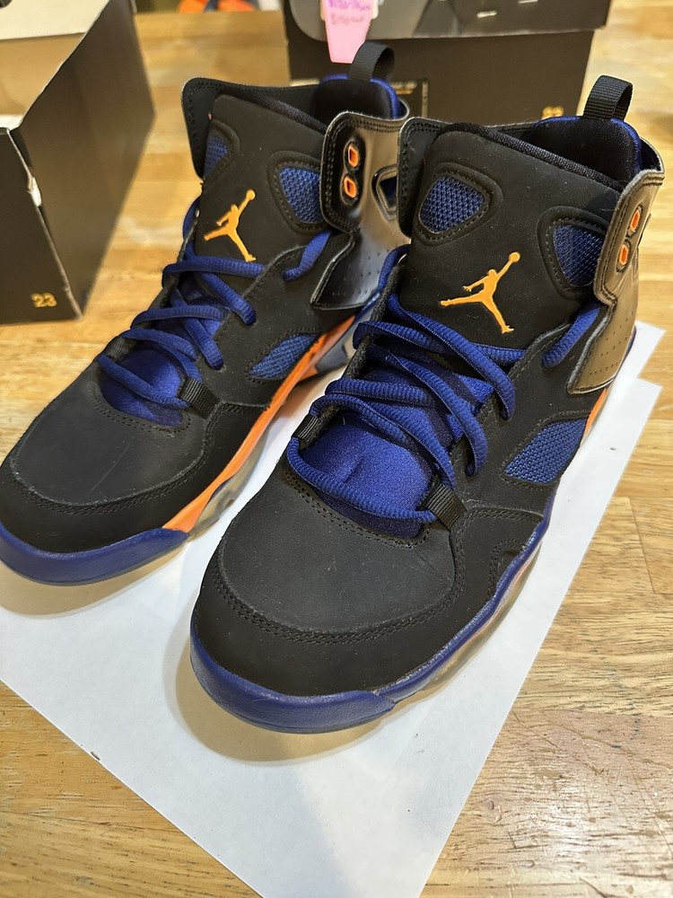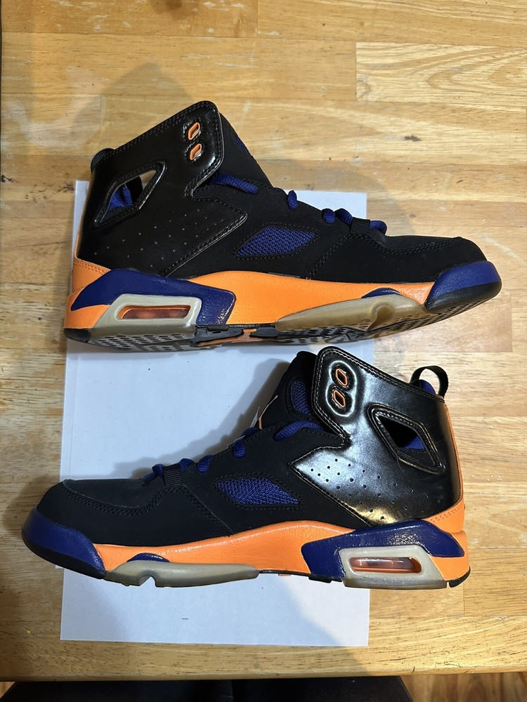 6.5y jordan flight club 91 citrus orange blue No OG box One scuff, light creasing Size 6.5 (GS) - Jordan Flight Club 91 Mid Black - Bright Citrus/ Deep Royal Blue 555472-046 Replacement Jordan box...