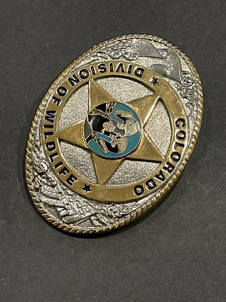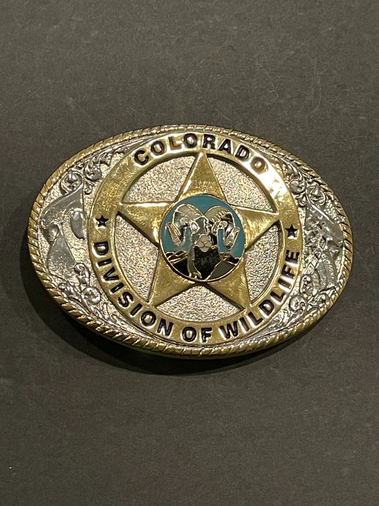 COLORADO DIVISION of WILDLIFE Creative Casting Metal Belt Buckle Approx. 3 1/2" X 2 1/2" Loop 1 1/2" Vintage Good Preowned Condition