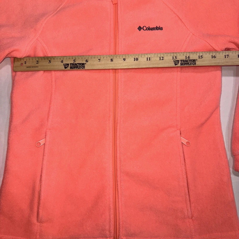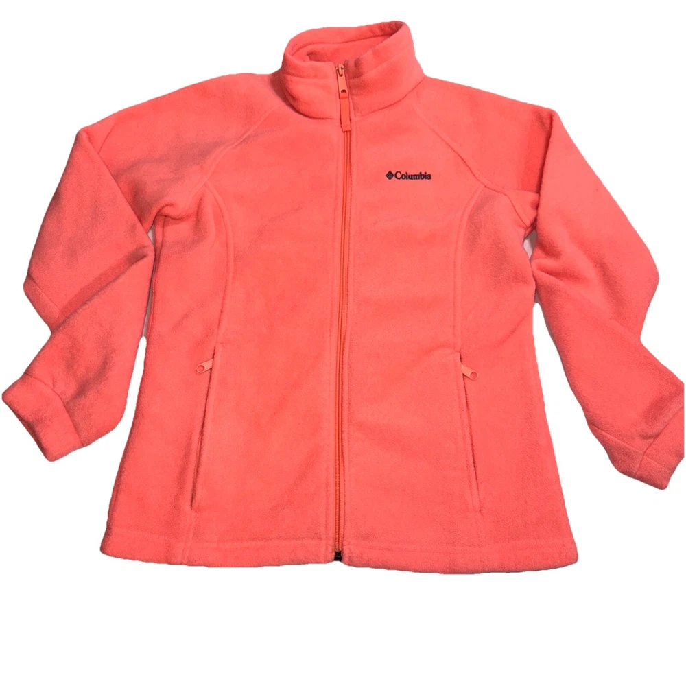 COLUMBIA Girls Peach Coral Orange Basic Fleece Full Zip Lightweight Jacket size large 14-16 in good preowned condition please see all photos for MEASUREMENTS & more details as they are part of the description as well. item shown in photos is the exact item you will receive. Please view all photos for more detailed description. Items come from a smoke free, PUP friendly, Scented detergent using household. All items are cross posted NO RETURNS J