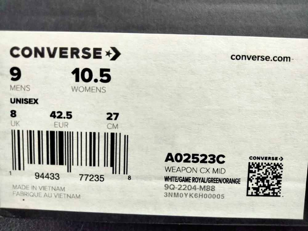 CONVERSE WEAPON CX MID WHITE / GREEN / ORANGE A02523C MEN SZ 9....