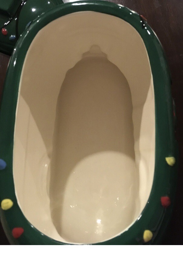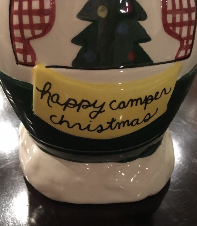 Add some vintage charm to your kitchen with this Creative Co-Op Happy Camper Christmas Trailer Cookie Jar. The traditional style and Christmas theme of this cookie jar make it perfect for the holiday season. All measurements are approx. Made by Creative Co-Op, a trusted brand, this cookie jar is perfect for collectors and those who love unique kitchen storage and organization options. No chips, cracks or crazing. Just a real nice cookie jar.