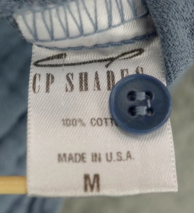 Up for sale is a CP Shades Shirt Women Medium Blue Joss Double Cotton Gauze Button Long Sleeve Please review measurement photos to ensure proper fit Size: Medium Measurements: Please use photos measurements above as clothing can vary from tag size I will ship this item out with a tracking number for confirmation. Items are shipped out EVERY DAY (Except Sunday) to ensure QUICK delivery! Please feel free to ask any questions you may have, I answer most questions instantly! Location:6861 Per Ebay standards, all clothing are steamed/laundered.