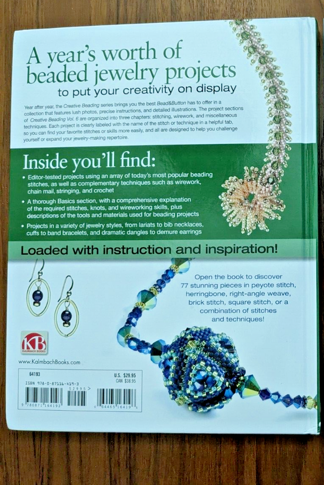 Delve into the world of bead craftsmanship with "Creative Beading Vol 6," a hardcover book brought to you by the Editors of Bead&Button Magazine. This edition is a treasure trove for enthusiasts of jewelry making and beadwork, offering a plethora of insights and techniques to enhance your crafting skills. Published by Kalmbach Publishing Company, Books Division, the book is a part of a series that has been celebrated among crafts and hobbies aficionados. While the publication year is not specified, the book is likely to contain instructions and projects that are timeless and relevant for beading hobbyists of the 2000s era. Brand New. Pet/Smoke free.