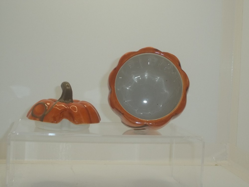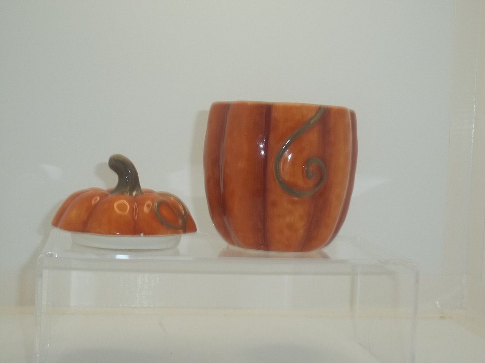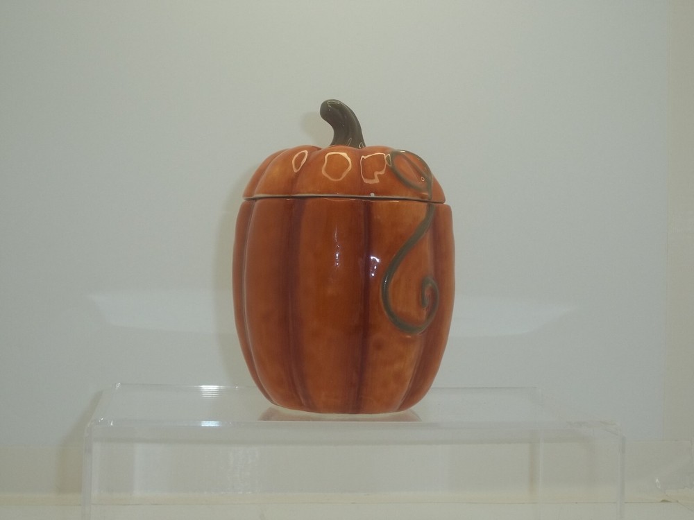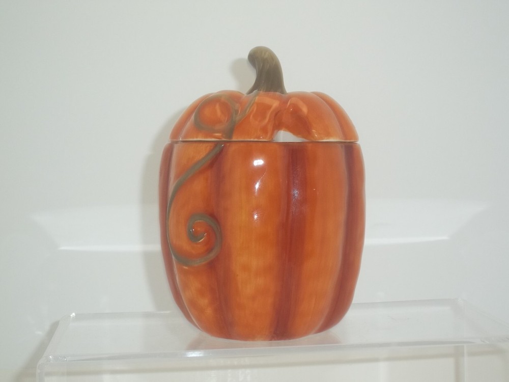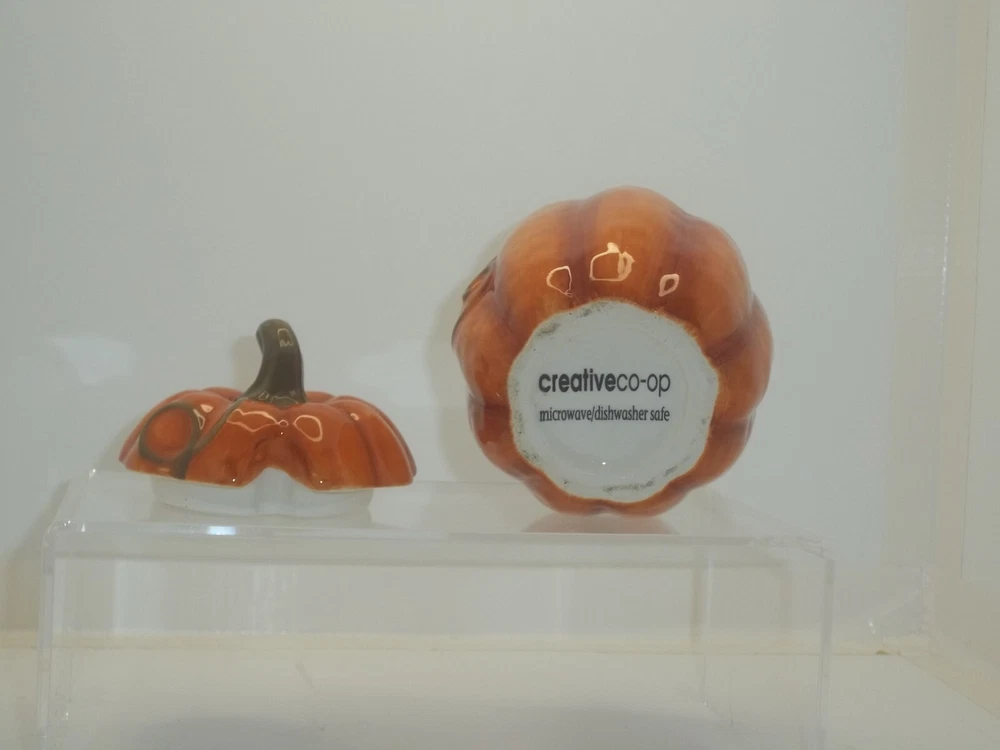 This pumpkin-shaped jar by Creative Co-Op is the perfect addition to any kitchen storage and organization collection. Made from durable stoneware material, it is 4.75 inches tall and 3.5 inches wide. The jar comes with a cover and is perfect for storing jams, preserves, or other small kitchen items. The orange color adds a pop of fun to your kitchen décor. This jar falls under the Canisters & Jars, Kitchen Storage & Organization, Kitchen, Dining & Bar, and Home & Garden categories. Get your hands on this unique and functional piece today!