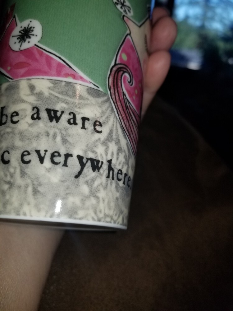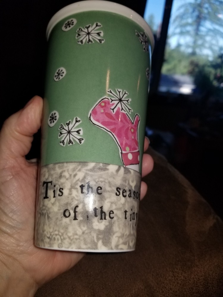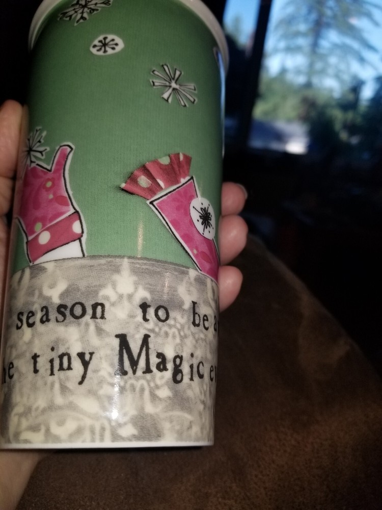 CREATIVE CO-OP CERAMIC COFFEE TUMBLER. " Tis the season to be aware of the tiny magic everywhere"....