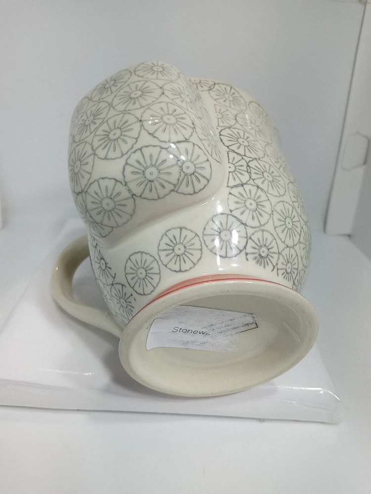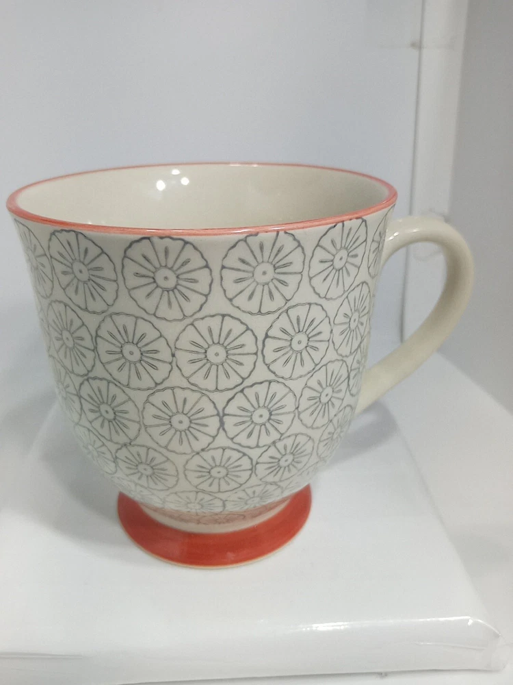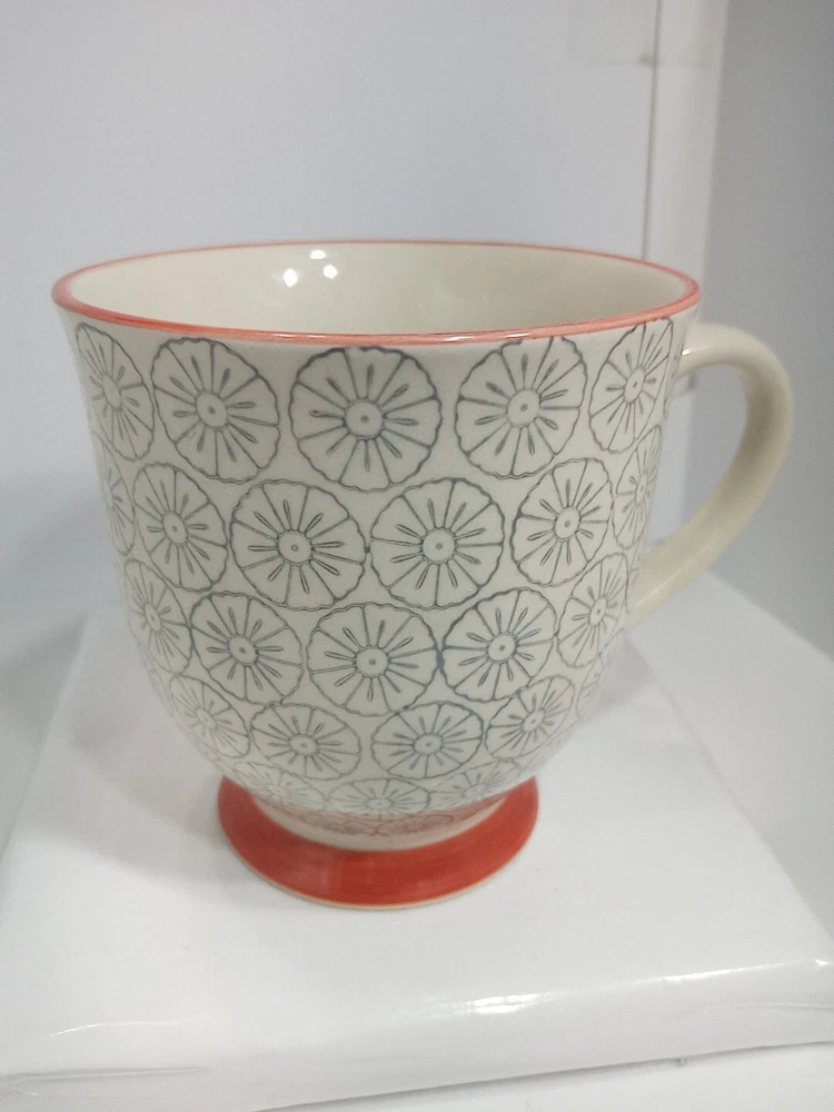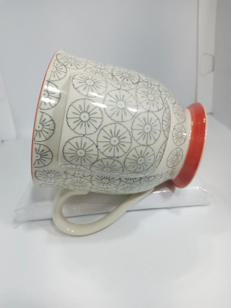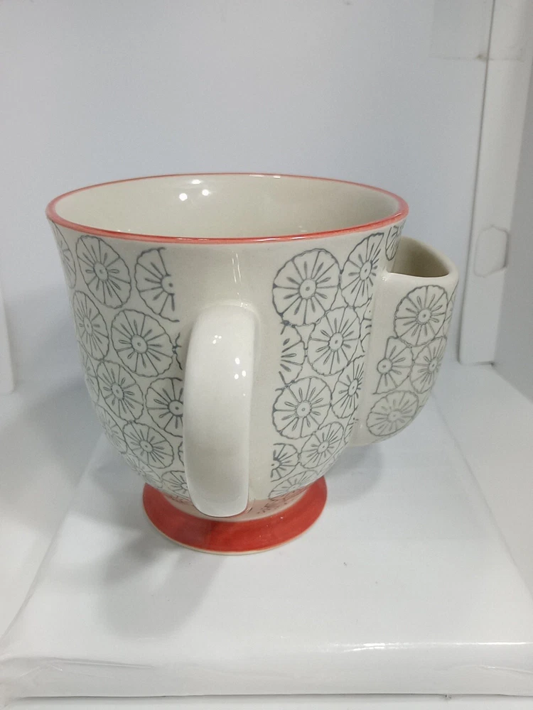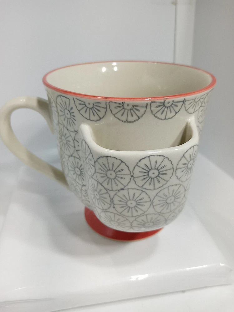 CREATIVE CO-OP COFFEE MUG. TEA BAG HOLDER MUG. DECORATIVE FOOTED MUG. B337 Shipped with USPS priority mail. This beautiful ceramic coffee mug is perfect for all occasions. With a round shape and a unique novelty pattern, it is sure to stand out in any collection. The mug has a capacity of 12 fl oz and is microwave safe for easy use. It features a handle with care and is machine washable for easy cleaning. The art deco style and multicolor design make it a great addition to any home or office. This mug is perfect for coffee, tea, latte, or any other beverage of your choice. Add it to your collection.