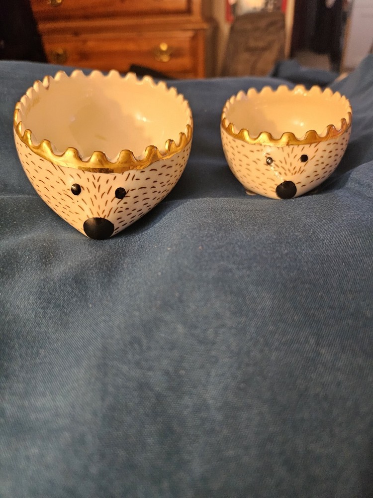 Add some charm to your kitchen with this set of 2 Creative Co-Op Ceramic Hedgehog Nesting Measuring Cups. The beige color and oval shape make them look cute and unique. Each cup holds either 1/4 or 1/2 cup of liquid, perfect for measuring ingredients for your cooking and baking needs. These cups are made of high-quality ceramic material and feature a hedgehog theme, adding a touch of whimsy to your kitchen.