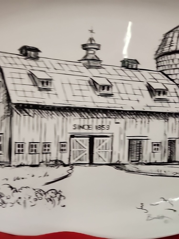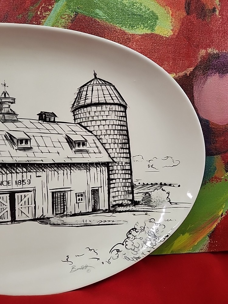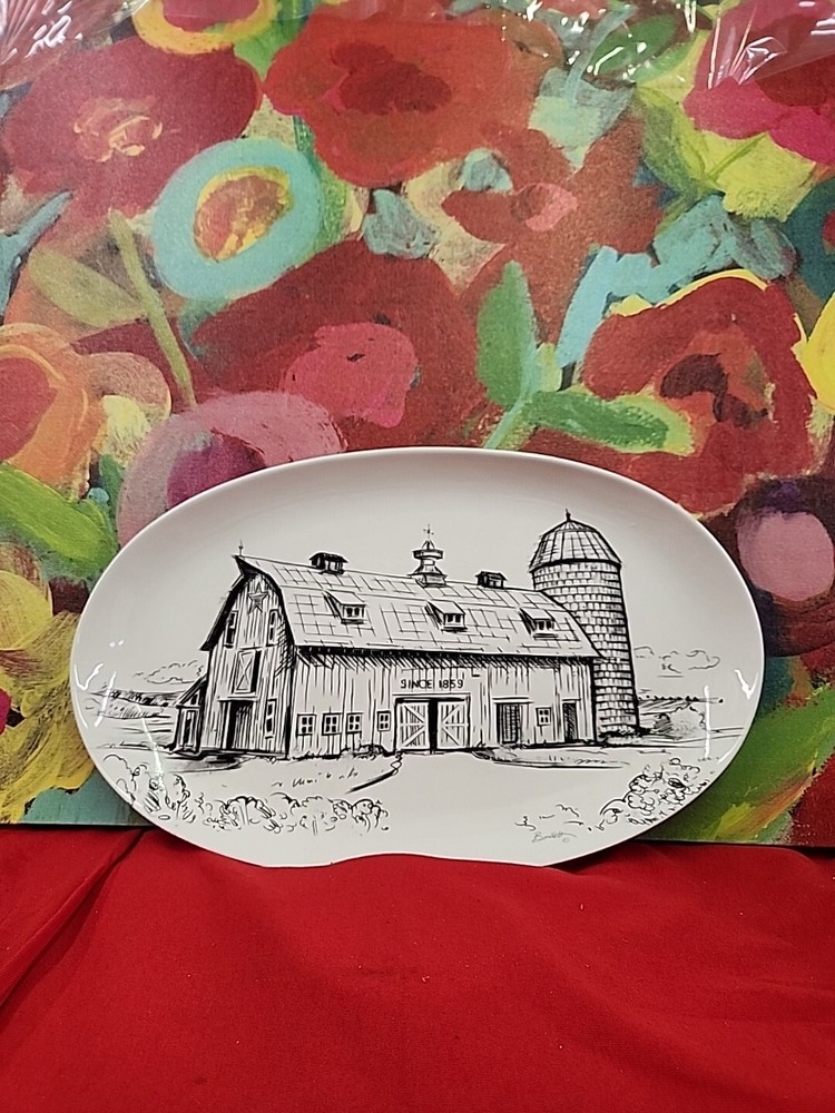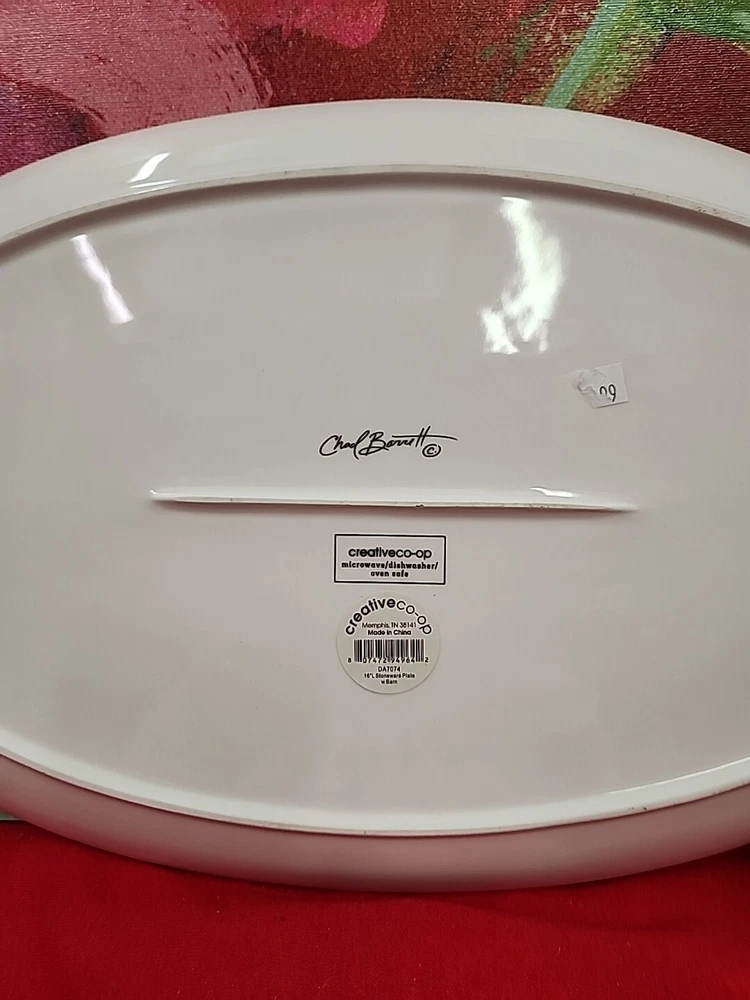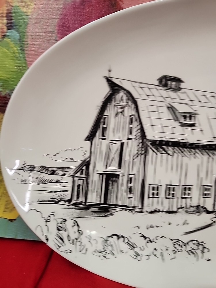 CREATIVE CO-OP Chad Barrett 16" Long Stoneware Plate With Barn Ceramic New