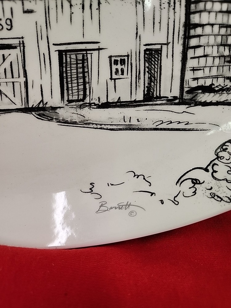 CREATIVE CO-OP Chad Barrett 16" Long Stoneware Plate With Barn Ceramic New...