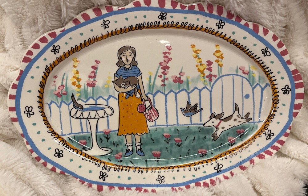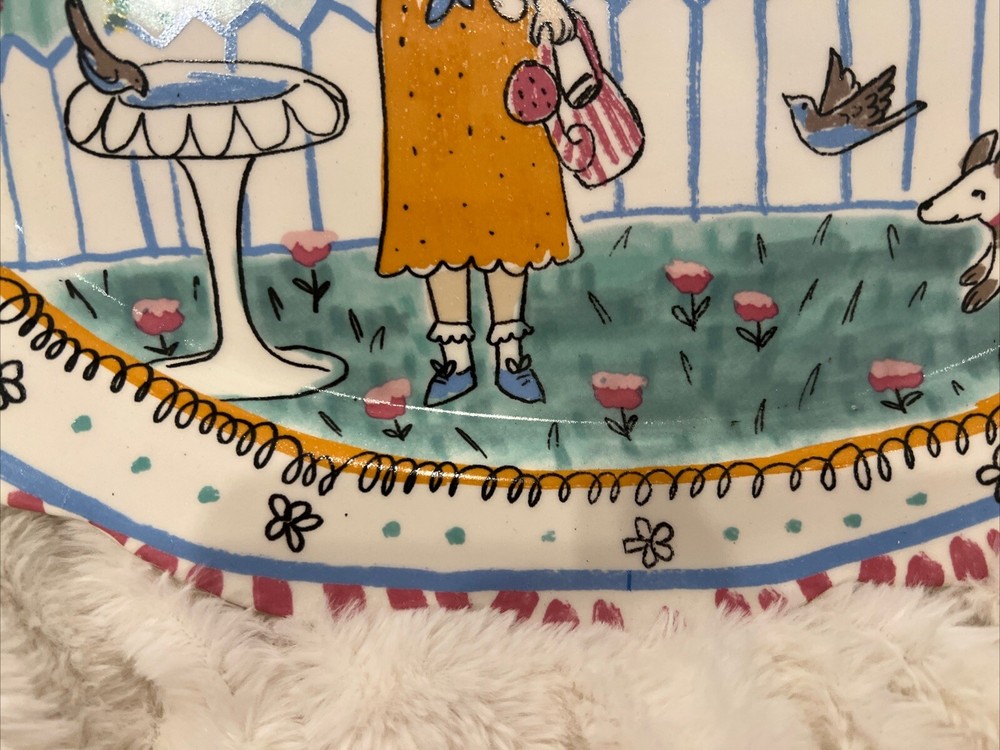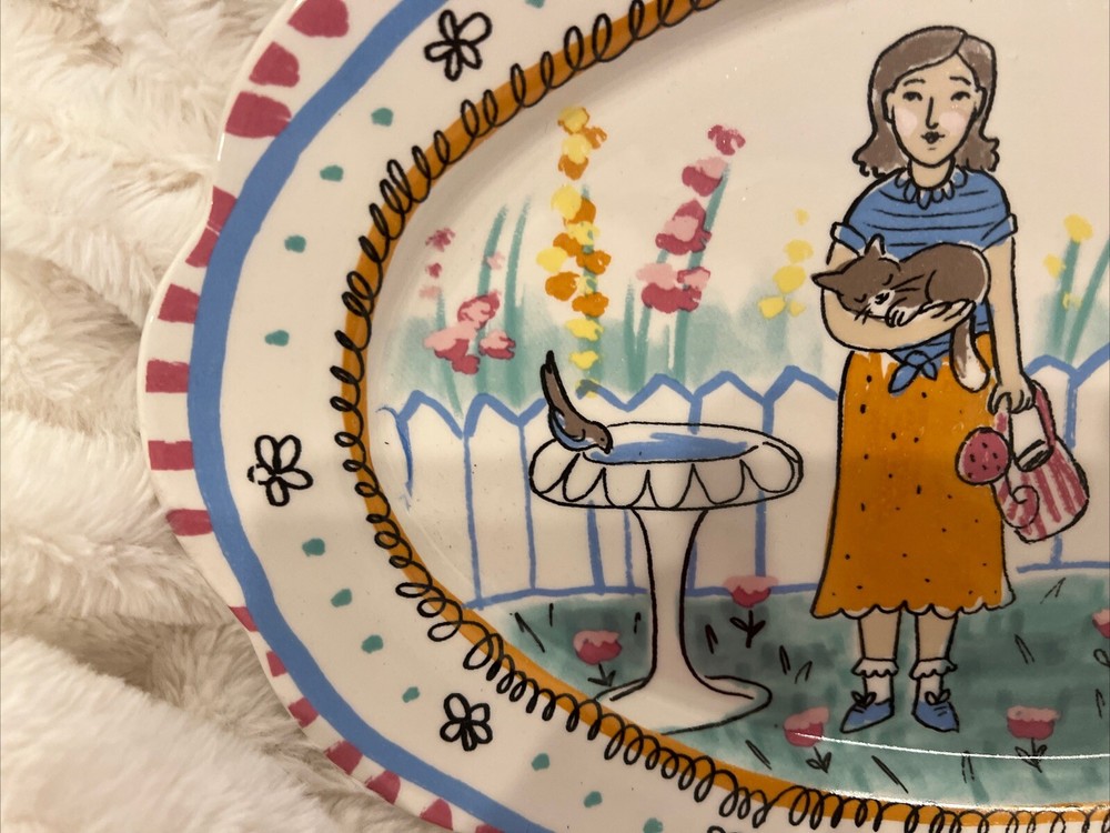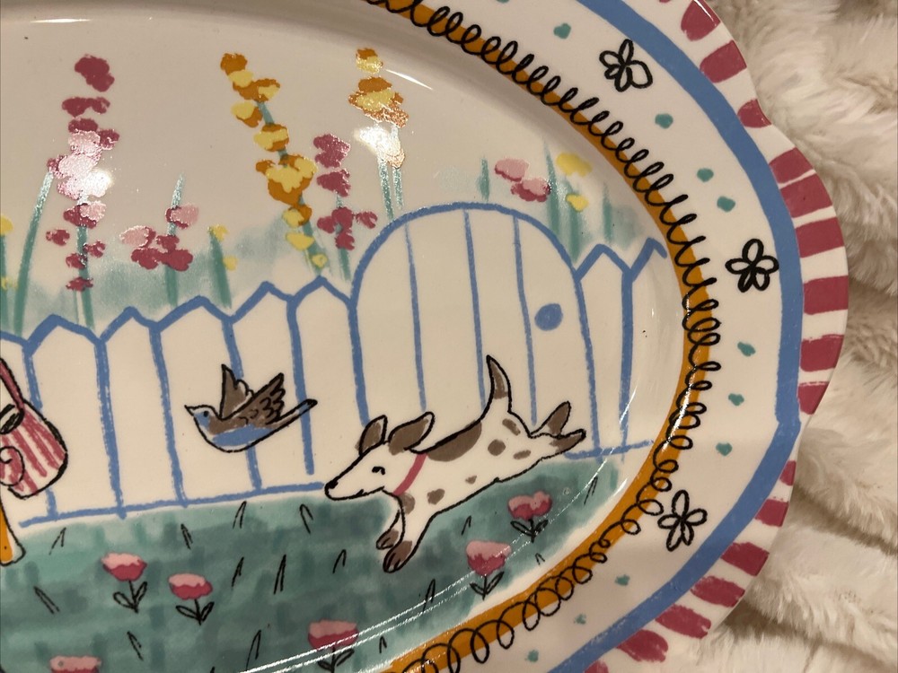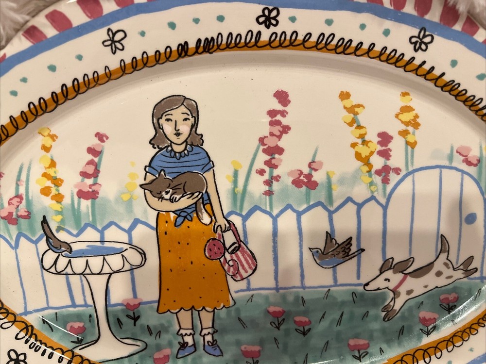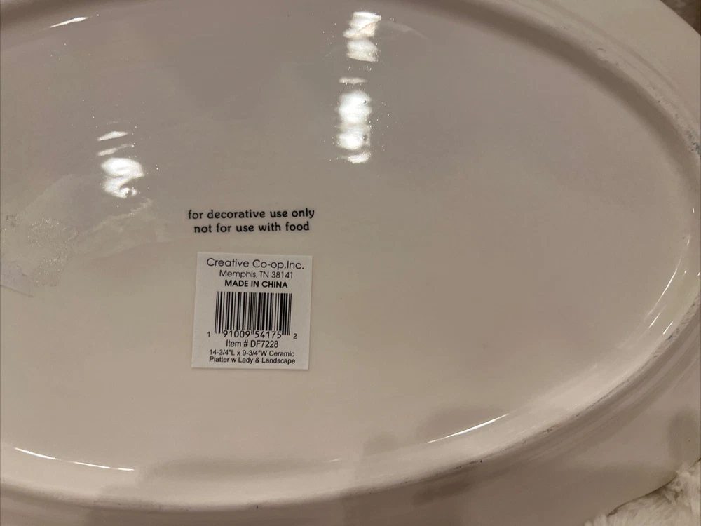 Add a touch of elegance to your dining table with this beautiful decorative oval platter from Creative Co-op. The platter features a stunning lady and landscape design in multicolor, making it a perfect addition to your art pottery collection. Crafted from high-quality ceramic, this platter is not only beautiful but also durable. The production style of this platter is art pottery, and it was manufactured using pottery techniques in China. The exact year of manufacture is unknown, but it is clear that this platter is a unique and timeless piece that will impress your guests. Use it to serve your favorite dishes or display it in your home as a decorative item.