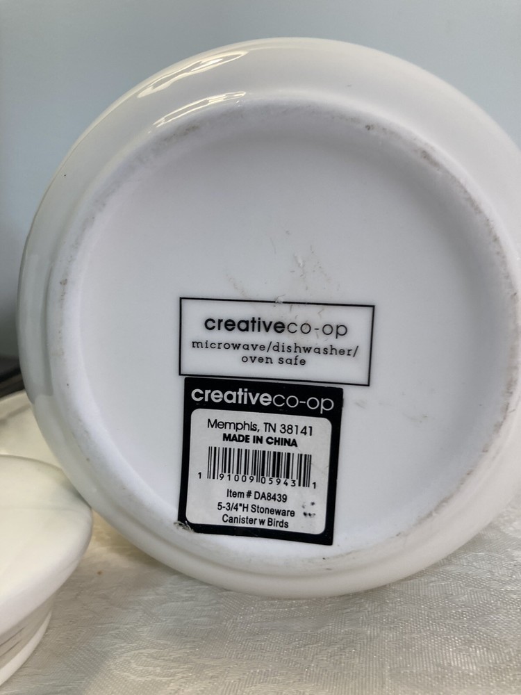 CREATIVE CO-OP "Love One Another" Canister; no damage; ht app 6" with lid. Condition is Used. Shipped with USPS Priority Mail.