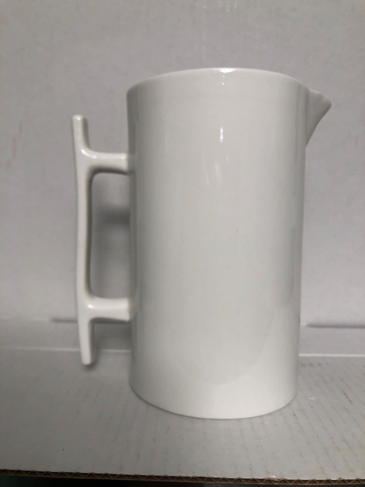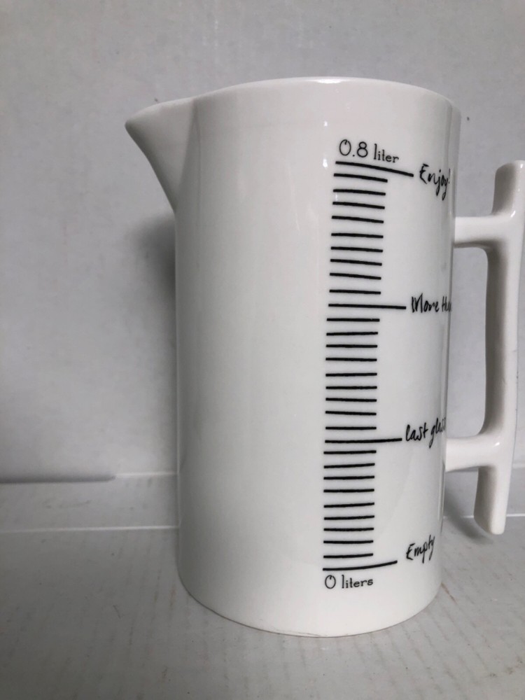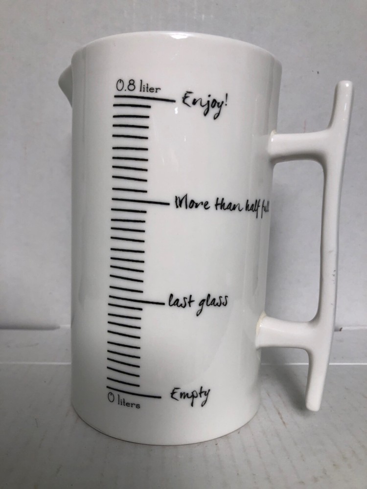 Nice pitcher, no issues that I see measures roughly 6 1/4 tall and 3 3/4 across the top. If you have any questions, please let me know. Thanks