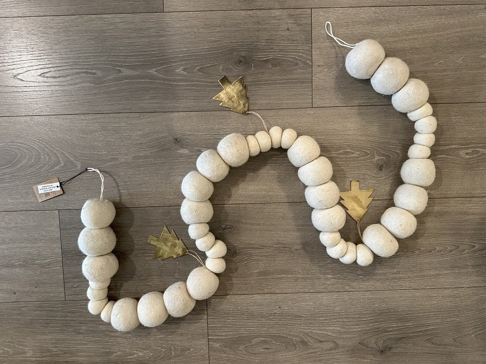 Add a touch of elegance to your Christmas decorations with this lot of 3 Creative Co-Op Wool Felt Ball Decorative Garland. Each garland measures 72" in height and features a solid pattern with beige color and hanging metal ornaments. The garland is made of high-quality WOOL material, making it a durable and long-lasting addition to your holiday décor collection. This garland is perfect for adding a festive touch to your home during the Christmas season. Its Circle shape and Holiday theme make it an ideal choice for those who want to create a warm and cozy atmosphere in their living space. Get your hands on this beautiful garland now and celebrate the holiday season in style! 216 inches in total. *This Item Includes only what is shown in photos, please review all photos, we ship what is shown in photos nothing more nothing less, please make sure you have read the items description and understand what you are buying or bidding on. *We ship to the continental US and Worldwide via eBay Global Shipping Program* Please review all photos and ask any questions before purchase. *We strive to make sure you know exactly what you are buying / bidding on, the following are the know faults or issues of the item listed above. Payment Policy We will accept payment within 3 days of purchase. Delayed payment is acceptable only when agreed upon prior to purchase. Late payments could result in shipping delays. Shipping Policy All items will typically ship within 1 business day of payment unless notification is sent to change shipping arrangements. We will only ship our items with USPS and use standard shipping rates. Please do not purchase products with the intent on making outside shipping arrangements. We do not ship with companies other than USPS. Return Policy All items we list are tested before listing and again prior to shipment. If items become damaged or do not work upon their arrival, please contact us to let us know of intent to return. All returns can be initiated by buyers via your EBay account. Only returns initiated within 30 days of delivery date will be considered for full refunds. Items that have been used and stored by buyers are no longer under consideration for return after the 30-day return window. International Shipping & Returns We cannot guarantee any items shipped internationally via EBAY Global Shipping Program. All items shipped are forwarded through an EBAY shipping partner and as such are no longer insured by the USPS. As such, we do not accept responsibility for damage or non-working items as they are no longer covered under USPS insurance. Any and and all items thought to be damaged during the shipping process should be addressed to EBAY directly for refund or claim purposes. Personal Policy We are a mother daughter resale team. We work and live outside of our Ebay store. Please note, if a problem develops with your item or there is an issue with delays or shipping, please understand that we are regular people and not a department store. We experience illness, emergencies, and other life events that could someday interfere with a schedule. We always do our best to keep open communication with our buyers as we are glad to update statuses within reason. Know that you may always purchase with confidence, but accidents happen and we will always to our best to solve any problems as they arise. Thank you for your business.