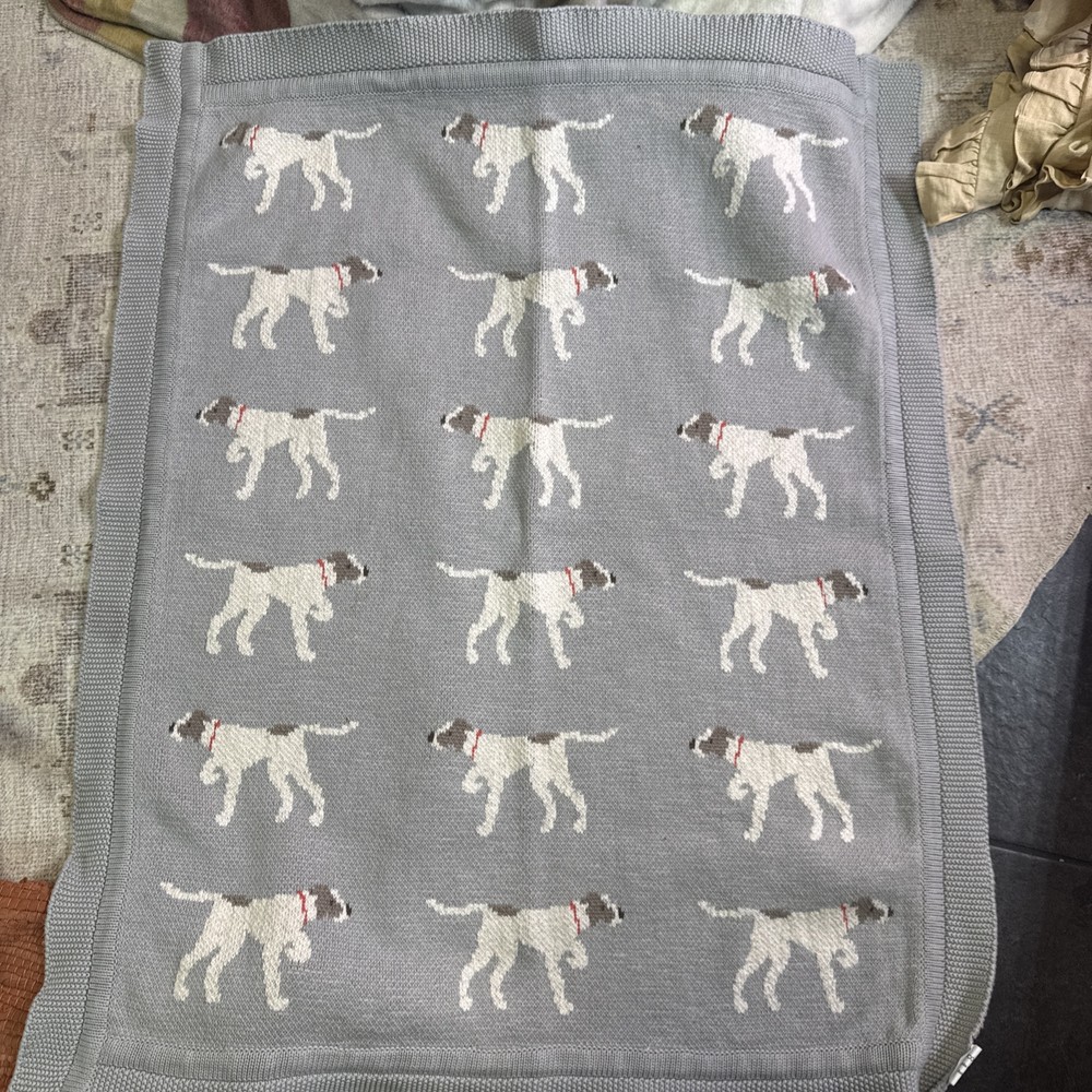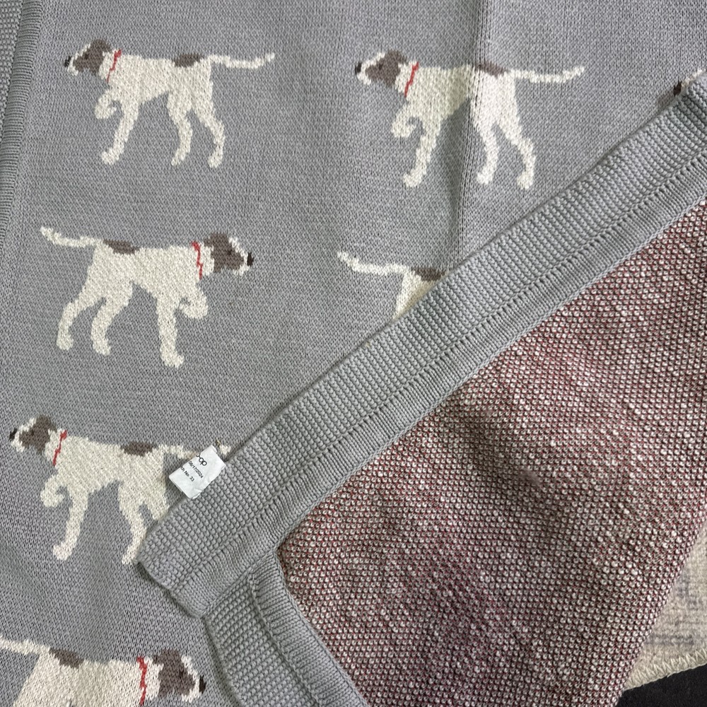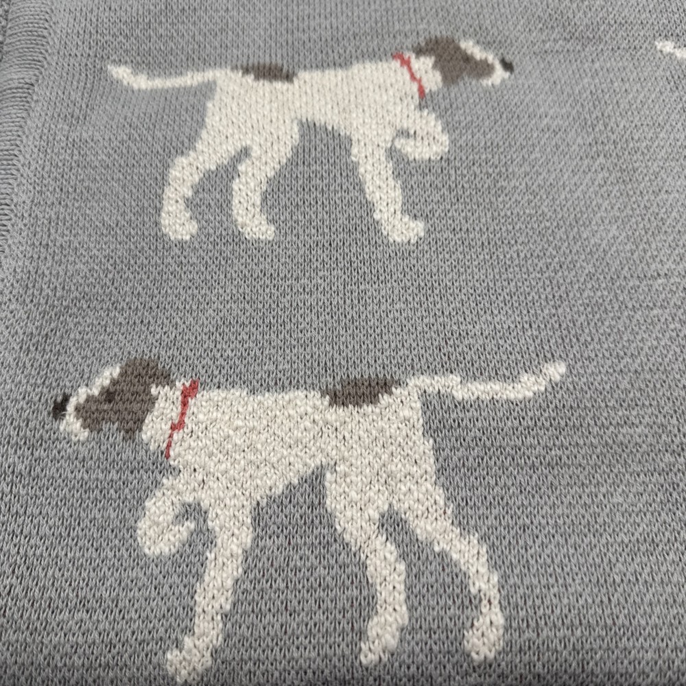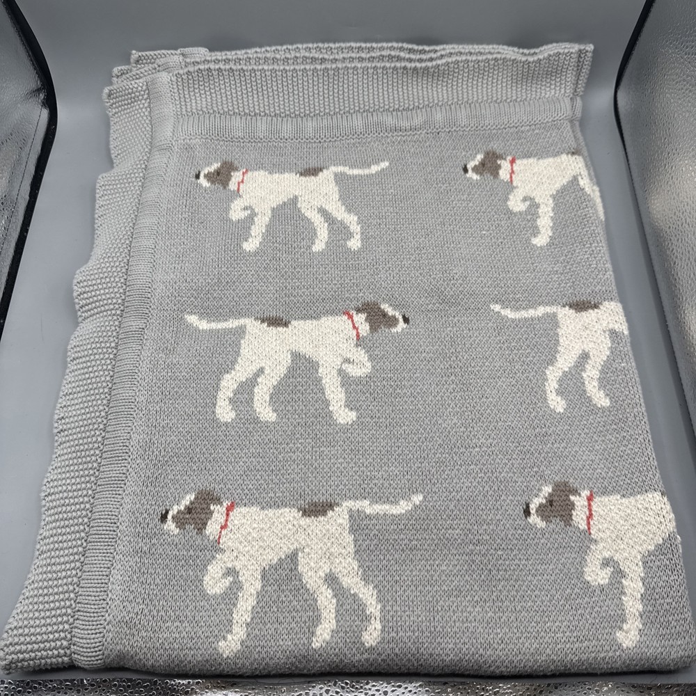 This Creative Co-Op throw blanket is crafted from cotton in a cozy knitted design, featuring a charming pattern of dogs. The rectangular blanket measures 32 inches in width and 40 inches in length, making it ideal for a crib or as an accent piece in any room. The gray color adds a soothing touch to the cozy theme, perfect for snuggling up with on chilly days. Made in India, this throw blanket brings warmth and style to any home decor.