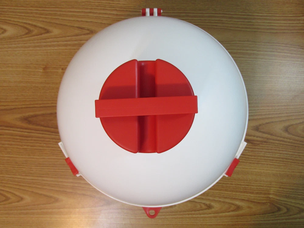 Very interesting floating cooler! Total height approx 21 1/2" tall from top to bottom, side to side interior measurement seen in images....