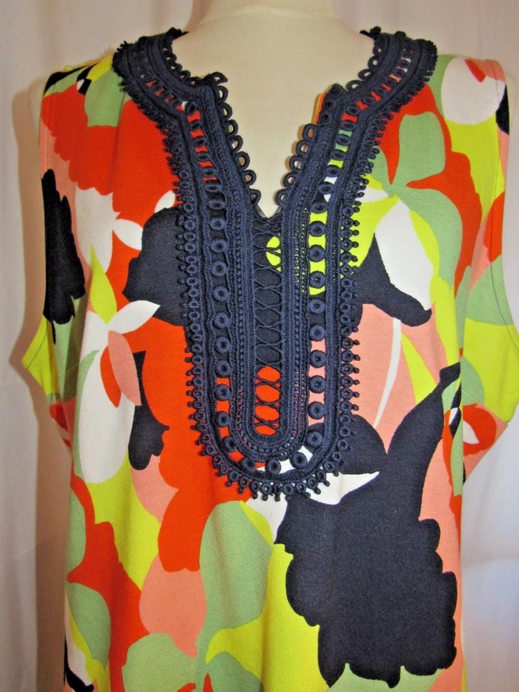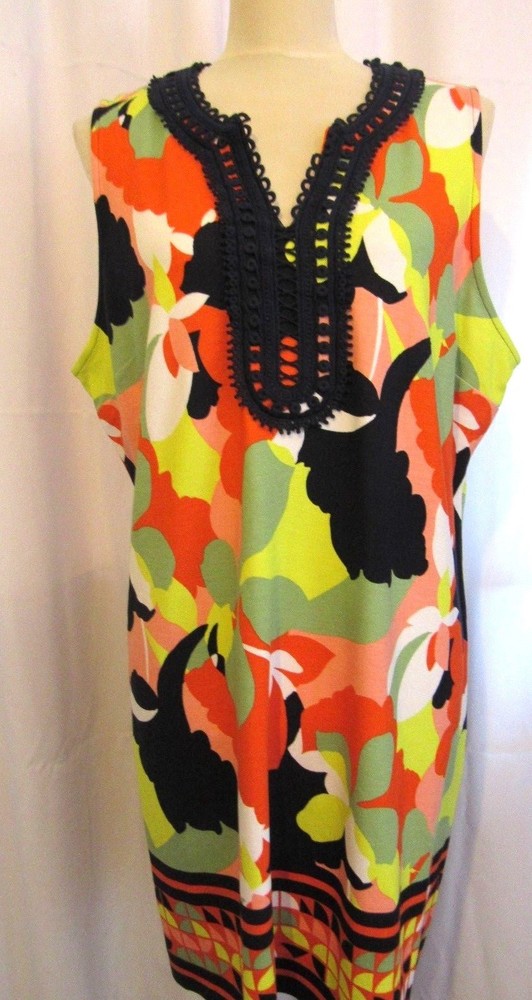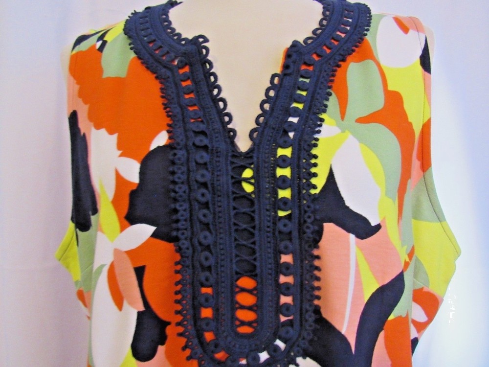 BEAUTIFUL MULTICOLOR DRESS W NAVY EMBROIDERY BY CROWN & IVY PERFECT COLORS FOR ANY SEASON MACHINE WASH COLD NEW WITH TAGS RETAIL $89.50 IF FOR ANY REASON YOU ARE NOT SATISFIED WITH YOUR PURCHASE PLEASE GIVE ME AN OPPORTUNITY TO MAKE IT RIGHT BY CONTACTING ME FIRST BEFORE LEAVING NEGATIVE FEEDBACK.