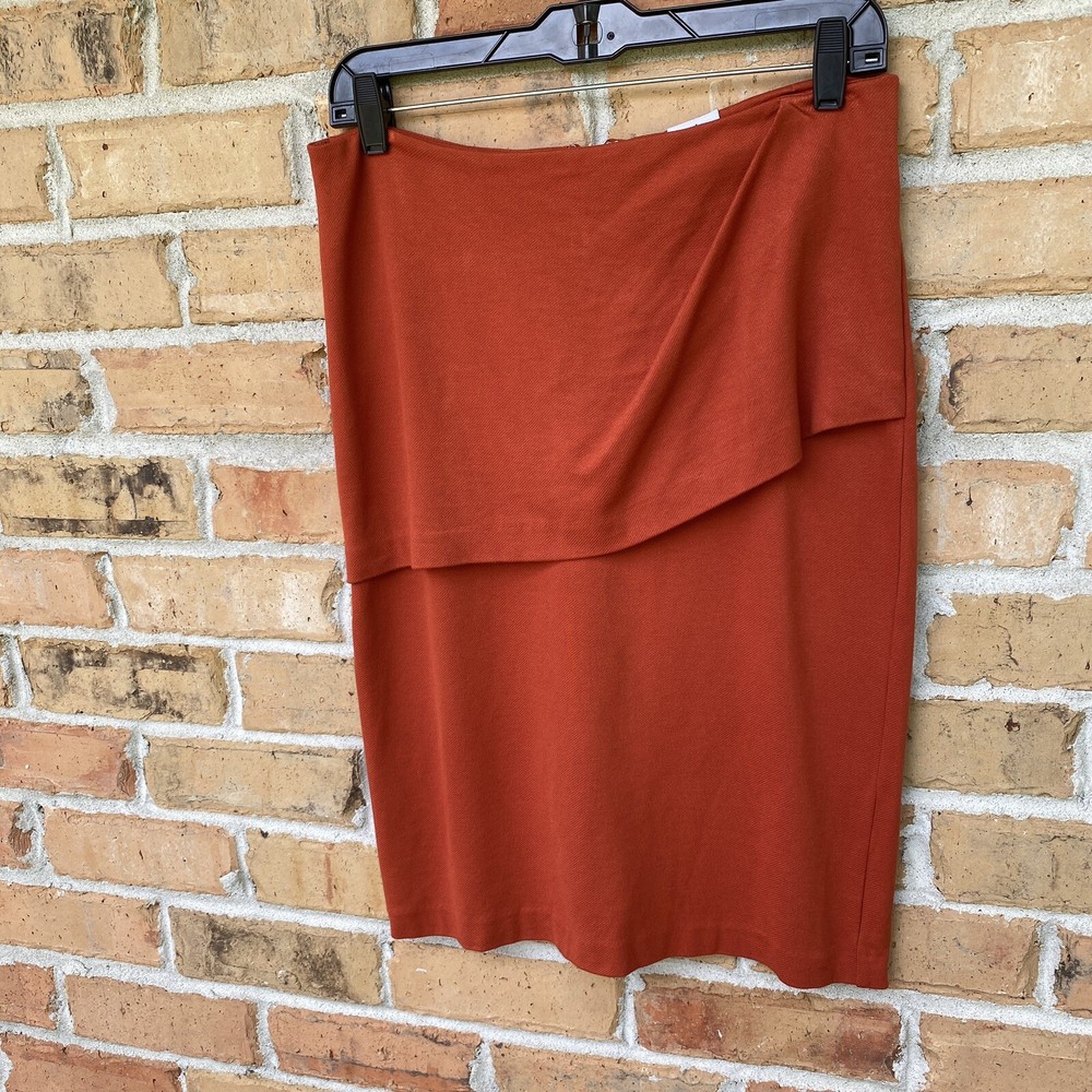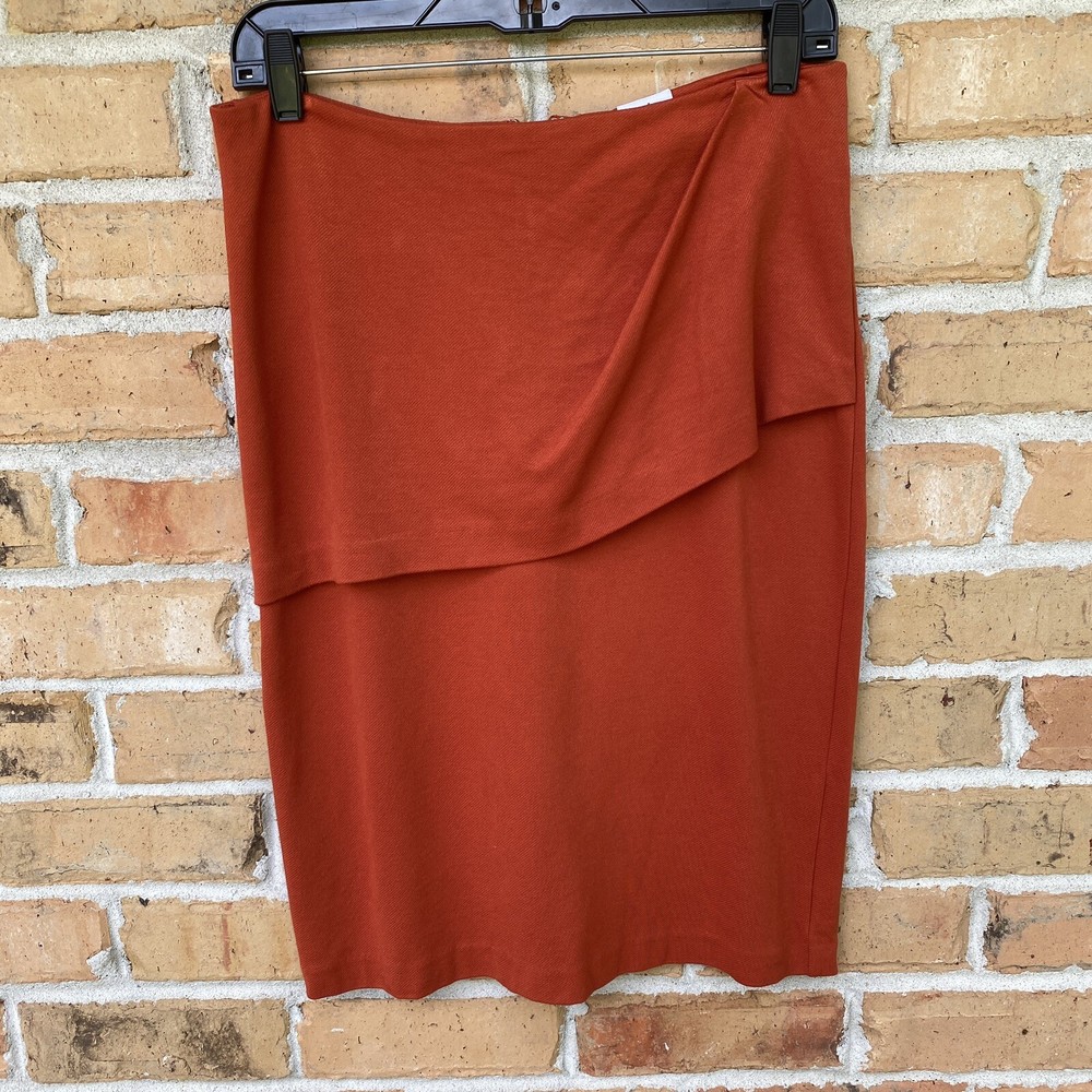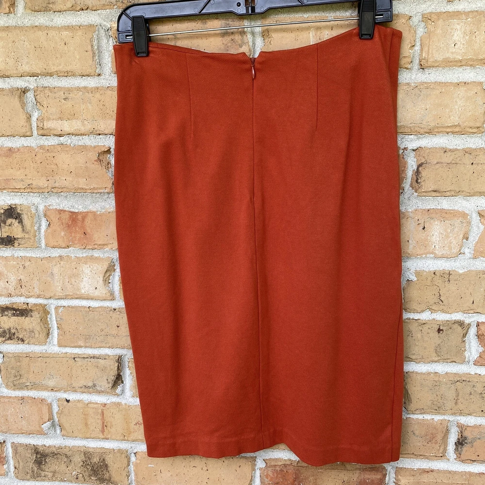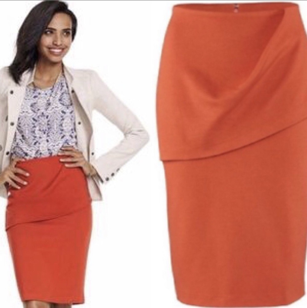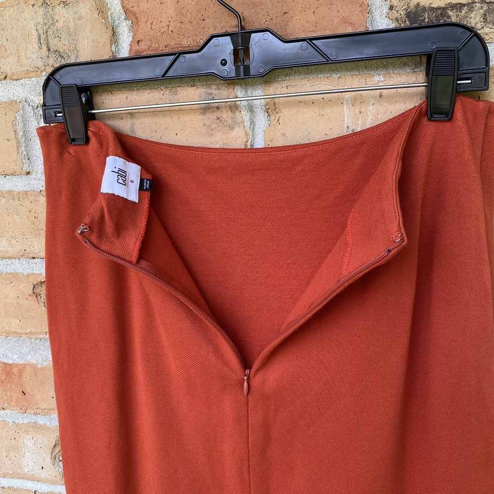 Cabi Womens Size 8 Overlay Pencil Skirt Tumeric Orange Stretch Back Zipper 3099. Condition is preowned. In good condition. There are no flaws. Please refer to pictures and measurements. Measurements (laying flat) Length 23” Waist 14.5” Hips 17.5”