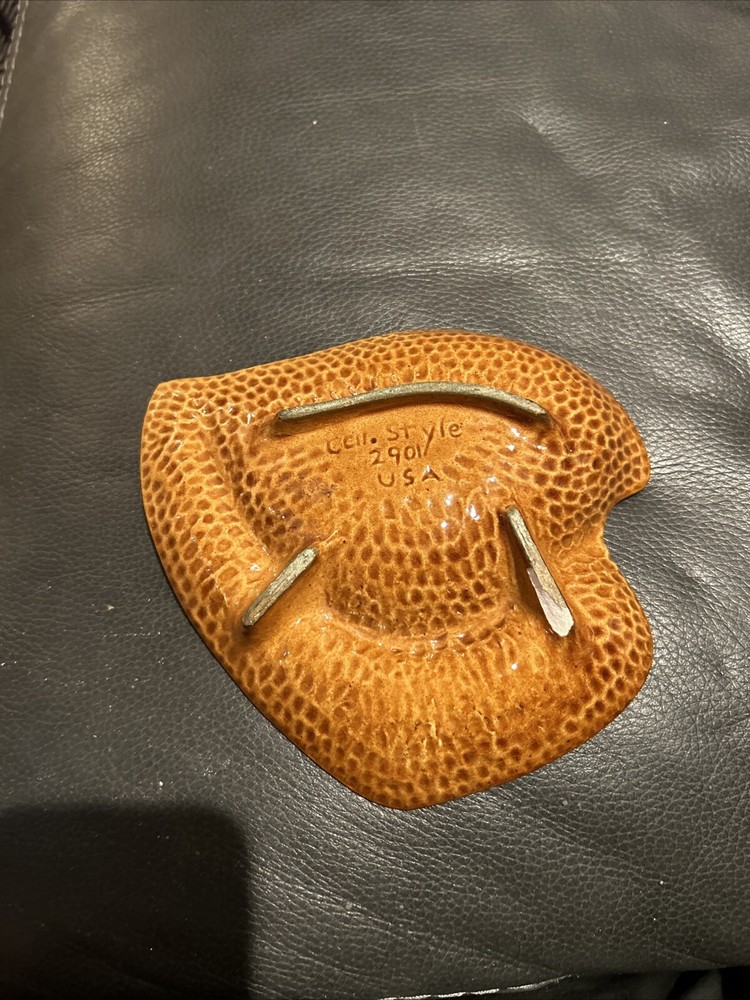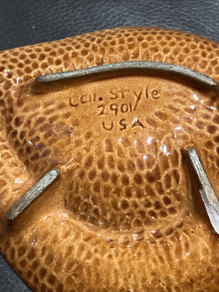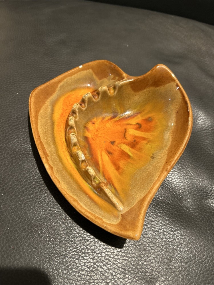 This Cal Style Mid Century Modern Ashtray is a unique piece that will surely be a great addition to your collection. Made in the United States, this handcrafted ashtray features a beautiful brown orange dripglaze and Art Deco design that is sure to catch the eye of any collector. With its vintage look and feel, this ashtray is perfect for any smoking enthusiast or collector of tobacco memorabilia. Whether you're a fan of vintage ashtrays or simply looking for a unique piece to add to your collection, this Cal Style Mid Century Modern Ashtray is definitely worth considering.