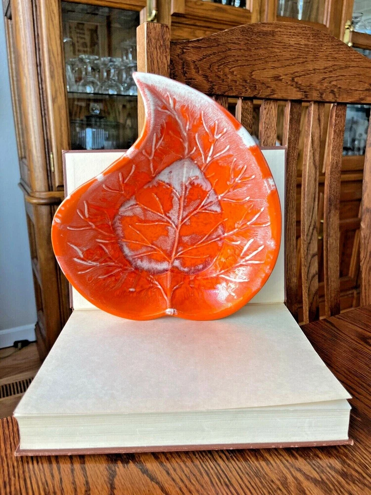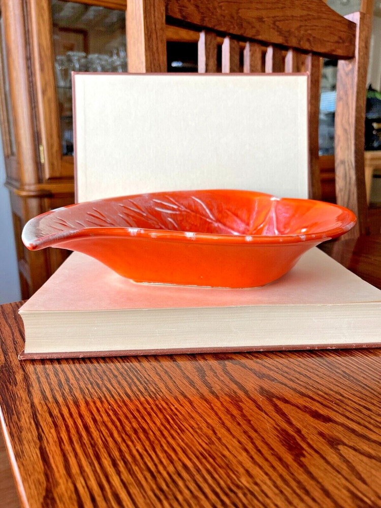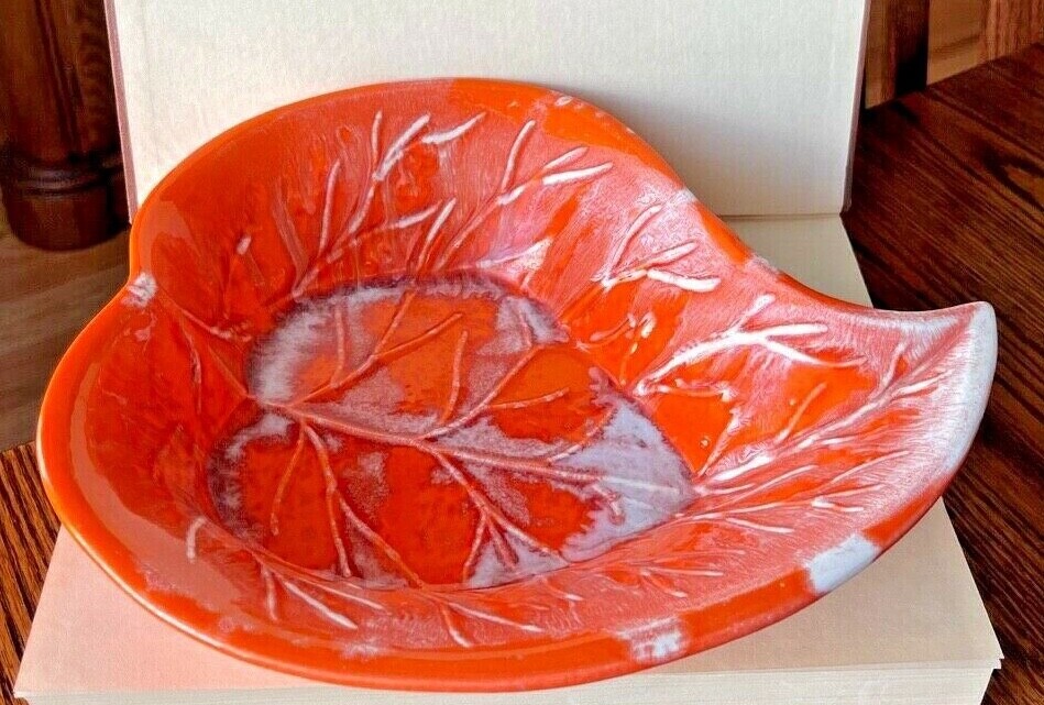 MCM Nonamax Art Leaf Bowl Orange Drip Pottery Lot A This is from an estate of a collector of ceramics. Purchased and displayed as art. - The piece measures 10" inches wide x 9 1/4" inches deep x 2 1/4 " inches tall. - There are no chips, nicks or cracks. - Shipping price reflects Item will be packaged and shipped well. - Fantastic and Rare item to add to any collection. Thank you for visiting my Ebay Store. Feel free to e-mail me with any questions you may have. Please browse the store and check back often as new listings are added frequently. Thanks again for stopping by and have a great day!