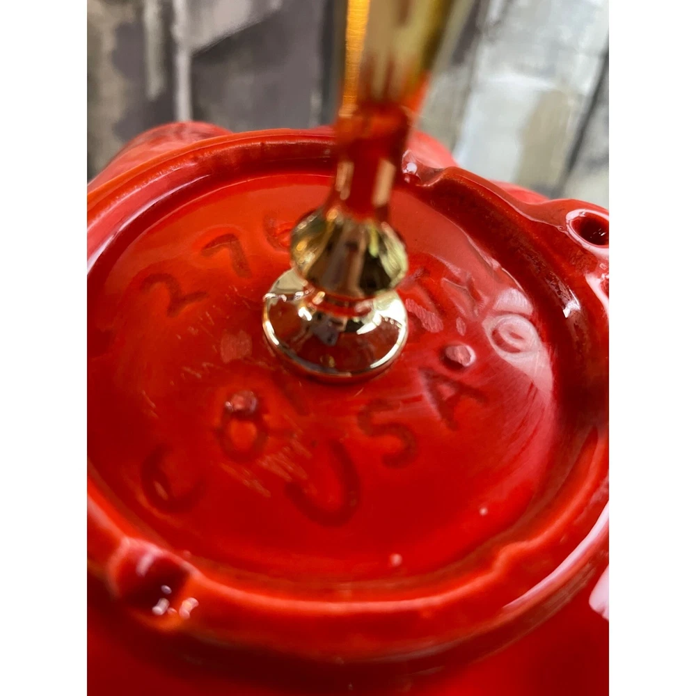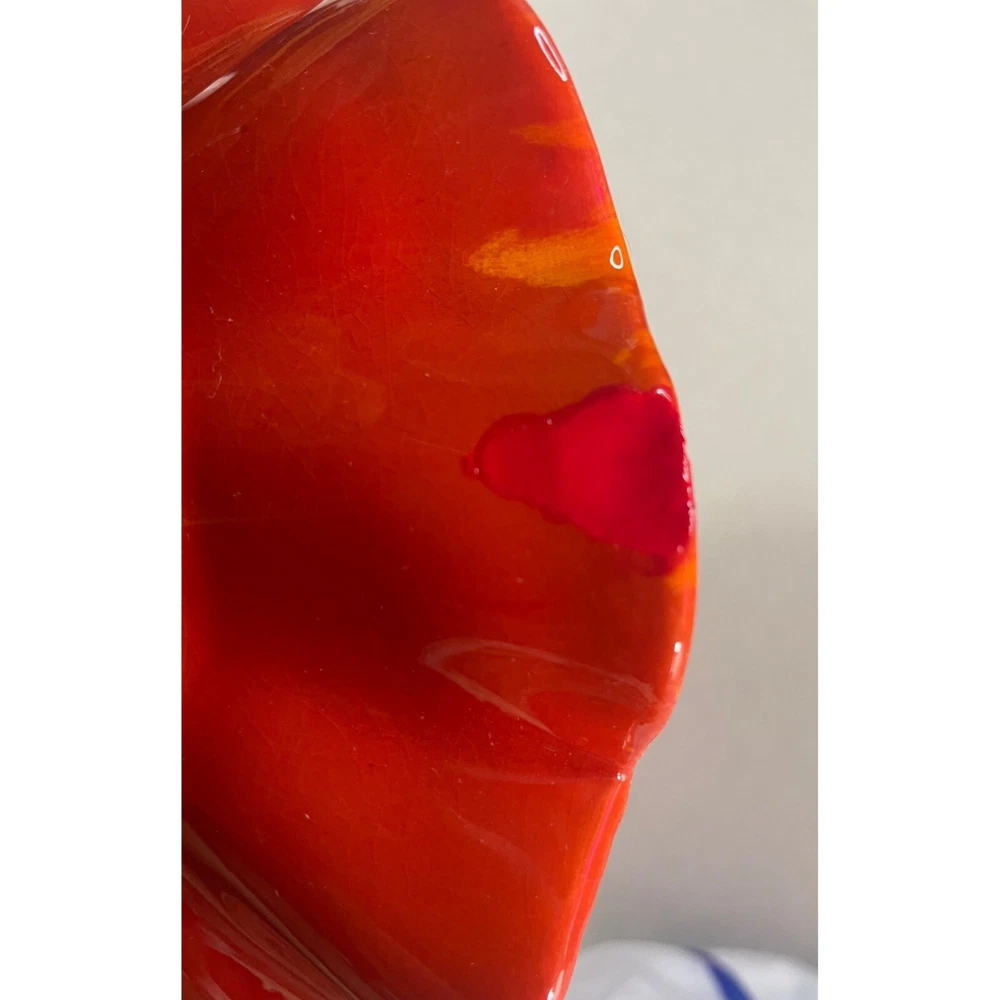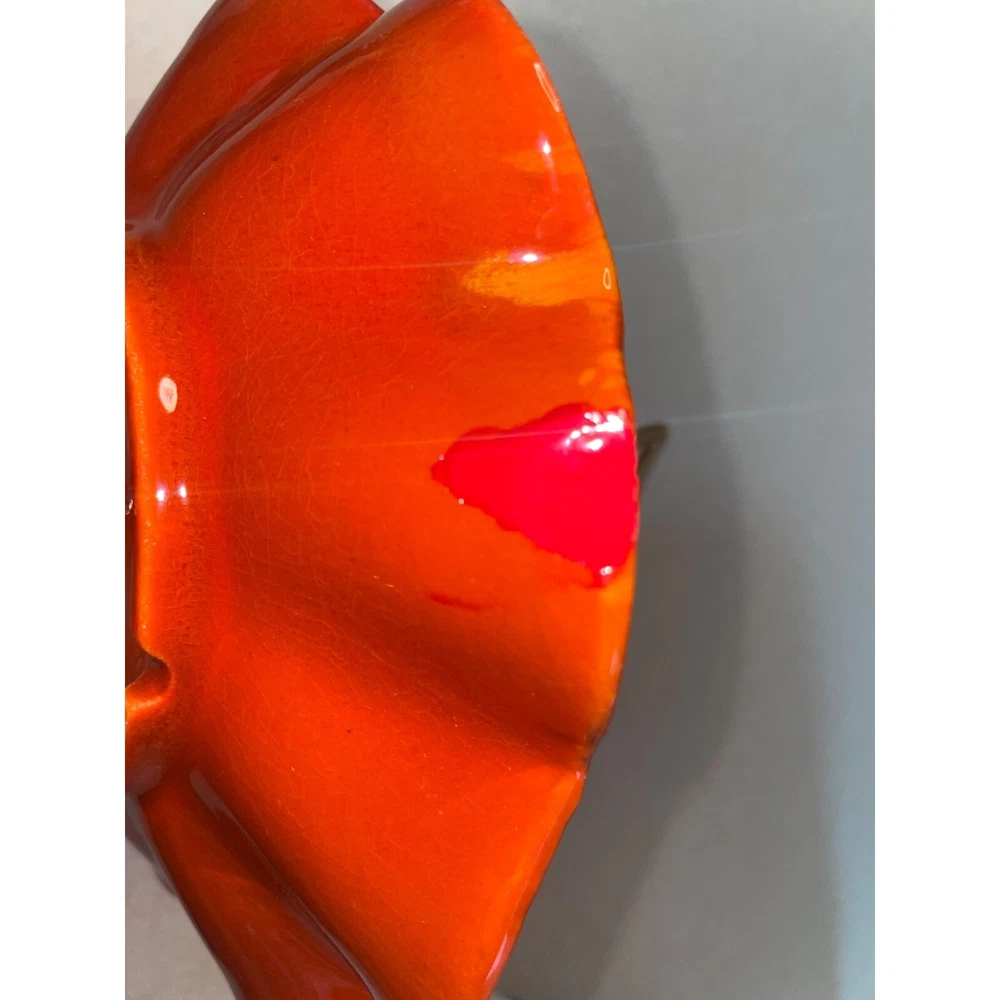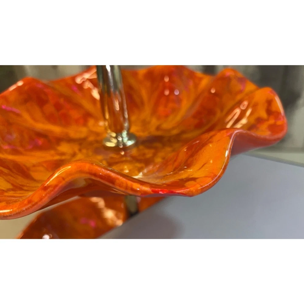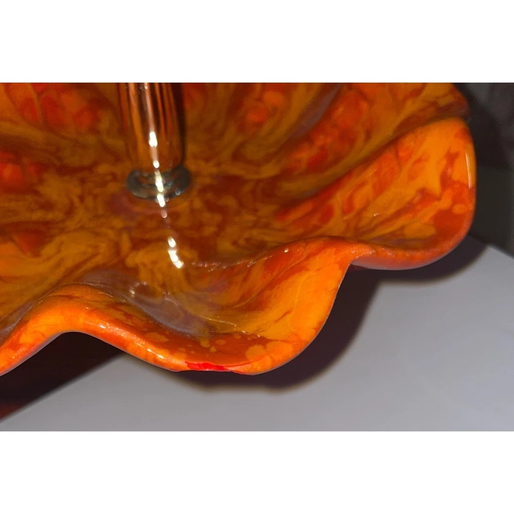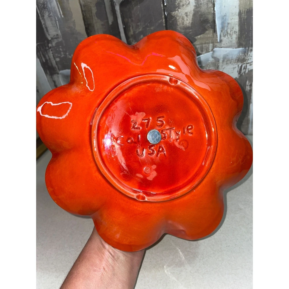 Description: Vintage California Pottery two tier tidbit server. Mid Century Modern. Red and orange drip glaze. Chip on underside of top plate, repaired. Not noticeable from above. See pics. Bottom plate diameter 9", top plate diameter 6.5". Approx 10" tall to top of handle. General Information: Photographs are part of the description. From a smoke free environment Buyer to pay actual shipping via USPS Priority Mail unless otherwise noted Payment is expected within three days Please visit my other listings for more unique items and vintage collectibles. Please save to favorites if you like what you see...new items added almost daily. Thank you for your patronage.
