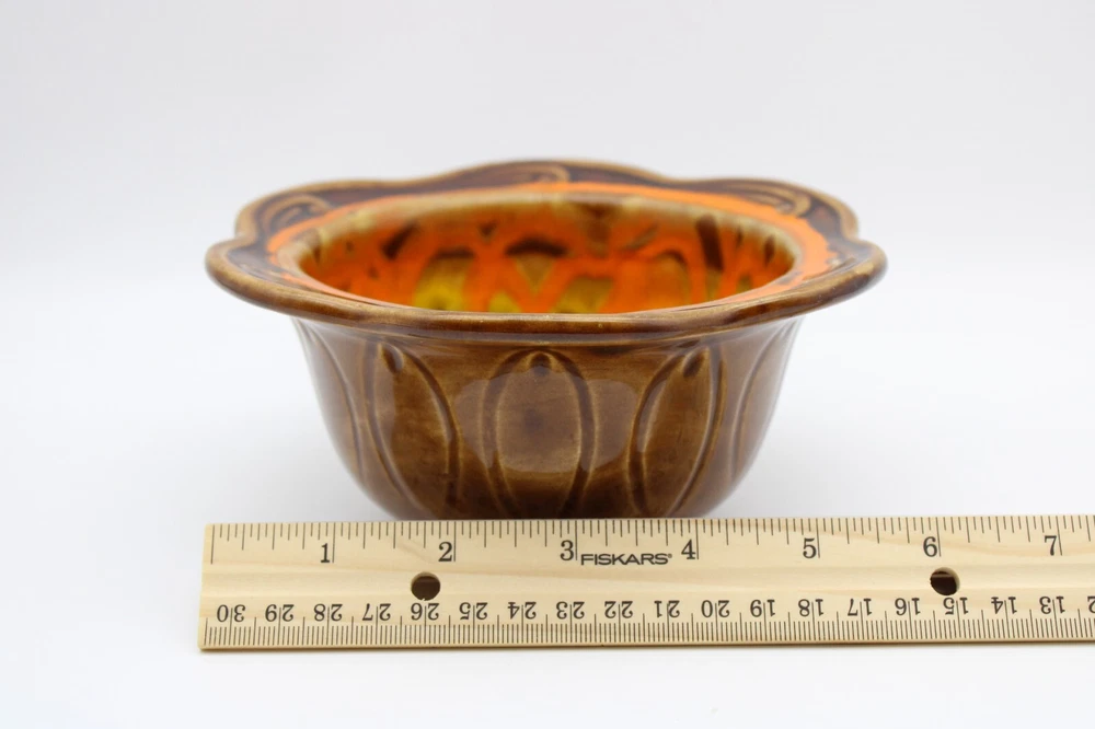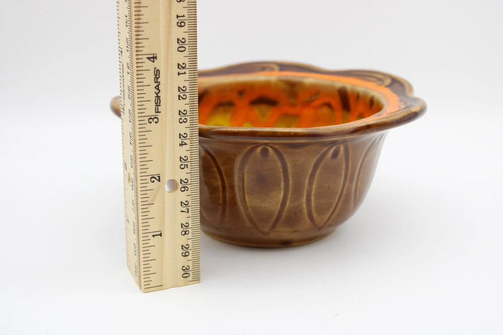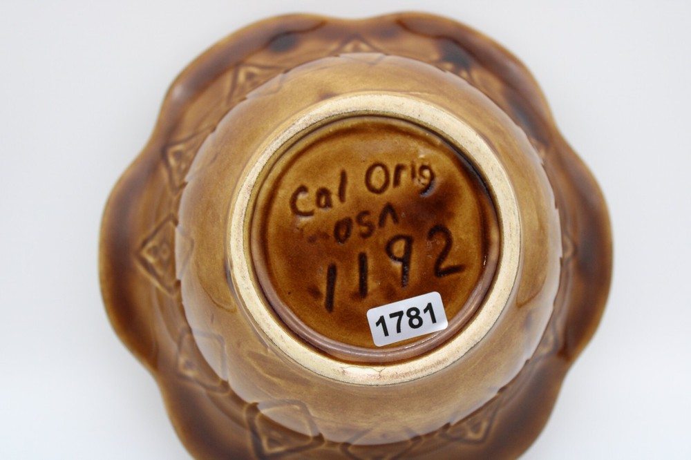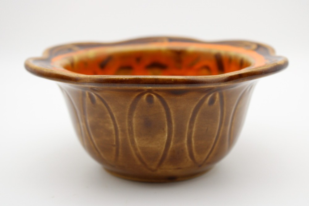 California USA Pottery Brown Orange Bowl Mid Century. See pictures for details. SHIPPING & HANDLING Mailing Address - I will ONLY ship to the address on file with ebay. Before making a purchase, please ensure that your address is correct. We may otherwise cancel the sale. Handling Time - Our handling time is set to THREE BUSINESS DAYS. We ship packages Monday - Friday, with the exception of holidays. Calculated Shipping - Our shipping fees are calculated based on weight and dimensions. We ship USPS. Insurance - All items are shipped with insurance.
