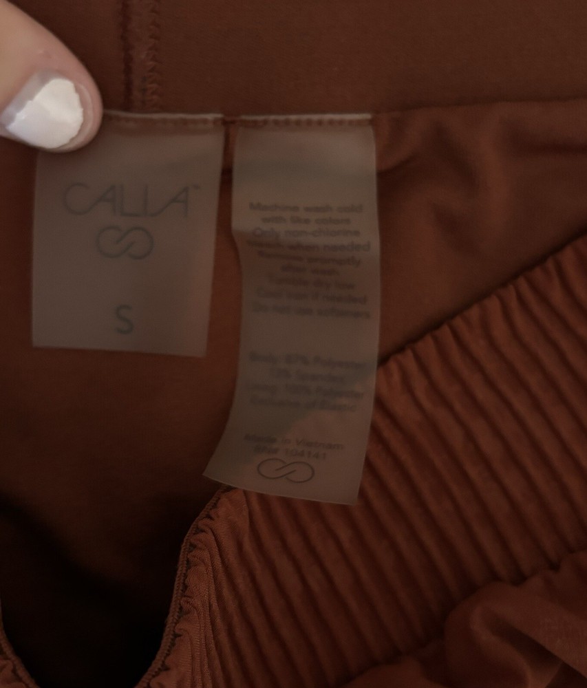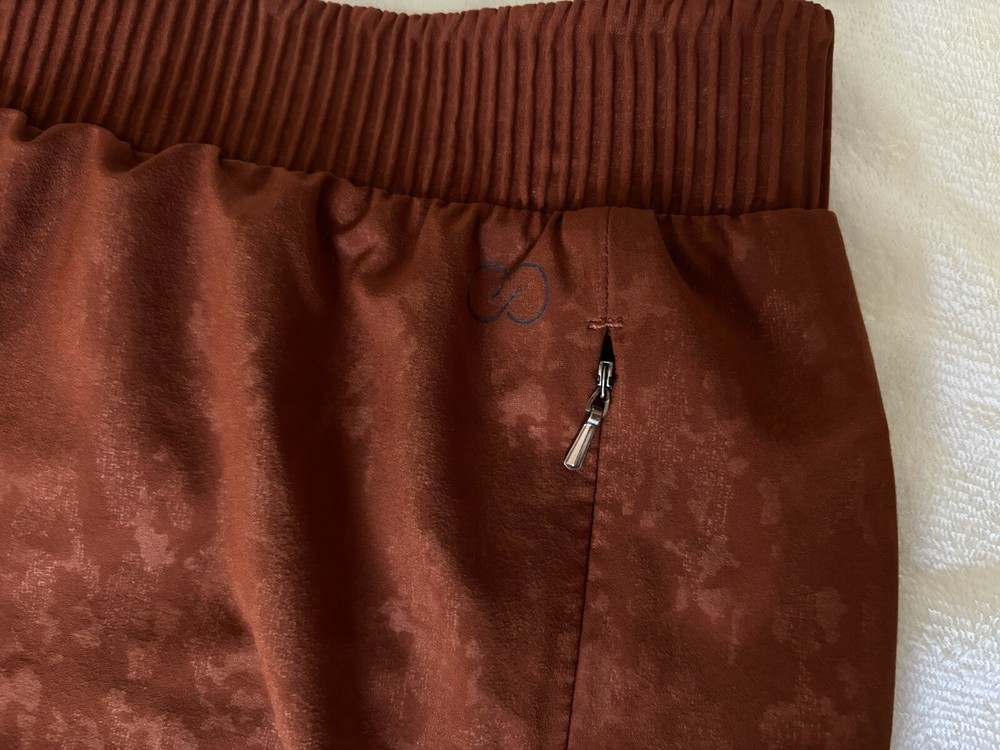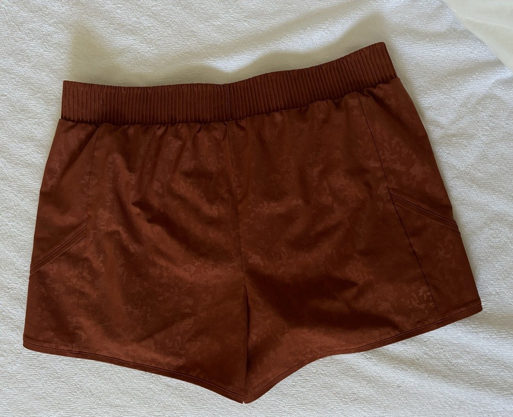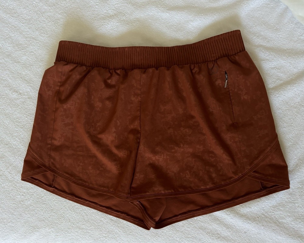 Elevate your workout game with these CALIA running shorts in rust orange. Made from a durable and easy to care for polyester blend fabric, these mid-rise shorts feature an athletic fit and are perfect for gym and training sessions as well as running and jogging. The waist size is S and the size type is regular, making it a comfortable fit for women who love to stay active. These shorts are perfect for women who are looking for functional and fashionable workout attire. - Please feel free to contact me if you have any questions, or if you want more pictures, or with an offer. -All orders ship next business day! - From a non-smoking home and pet free home. - Products sold as is. No returns.