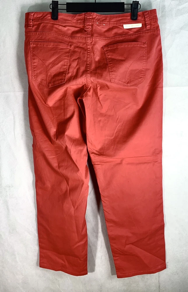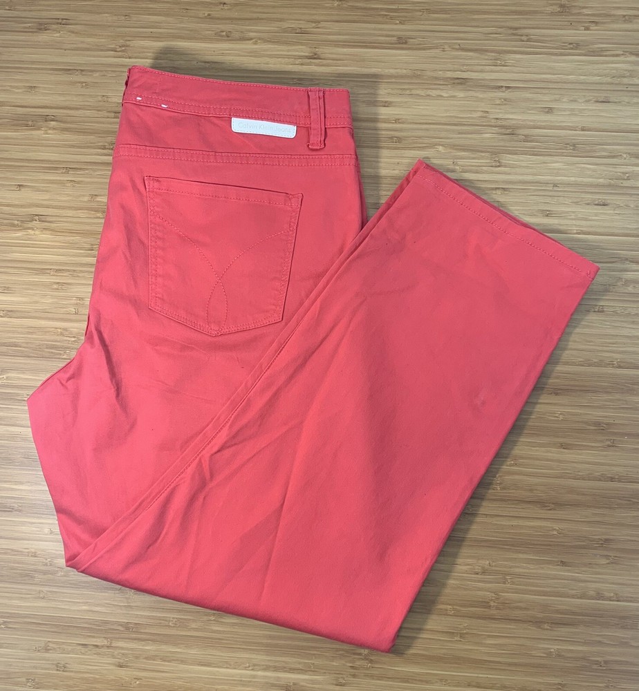 Calvin Klein Jeans Womens Size 14 Skinny Crop Red Orange Stretch Denim Mid Rise.