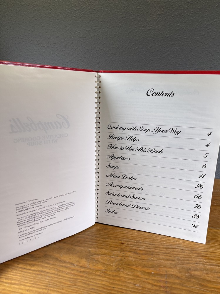 Fourth Edition First Printing Cambles Soup Creative Cooking 10,000 recipes 1988 Spiral Hardcover Campbell’s Co. Condition is "Used". Shipped with USPS Priority Mail.