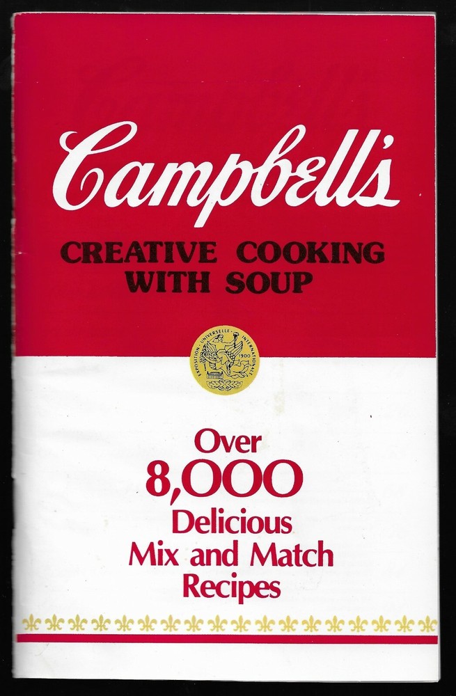 Campbell's Creative Cooking with Soup ( 1985 Campbell Soup Company) - Pages are white; spine has wear and the back cover spine edge has a bindery chip at the bottom right-hand corner. Shipped by USPS Media Mail.