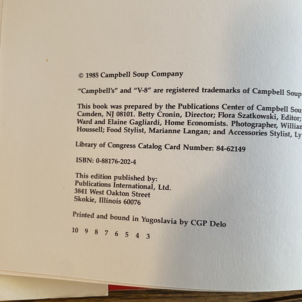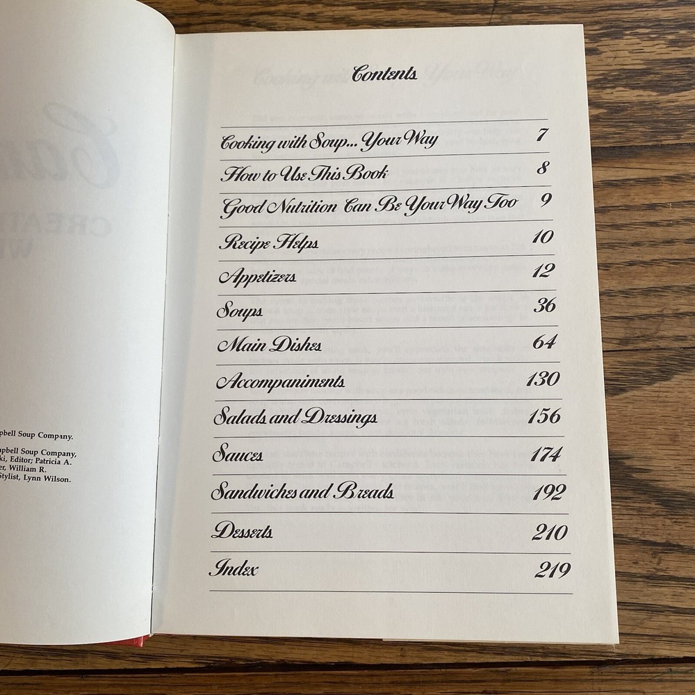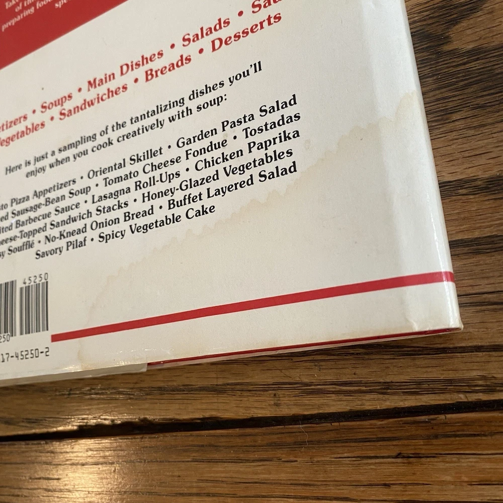 Campbell's Creative Cooking With Soup 1985 Cookbook Hardcover Book Light water spots on cover. See photos for details....