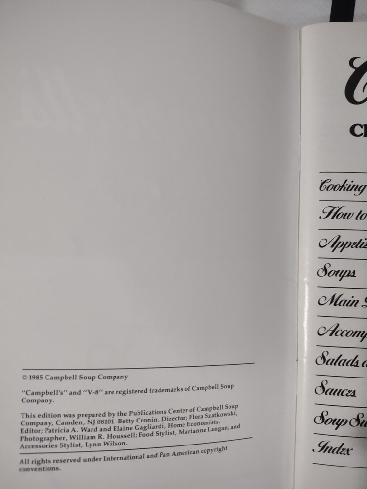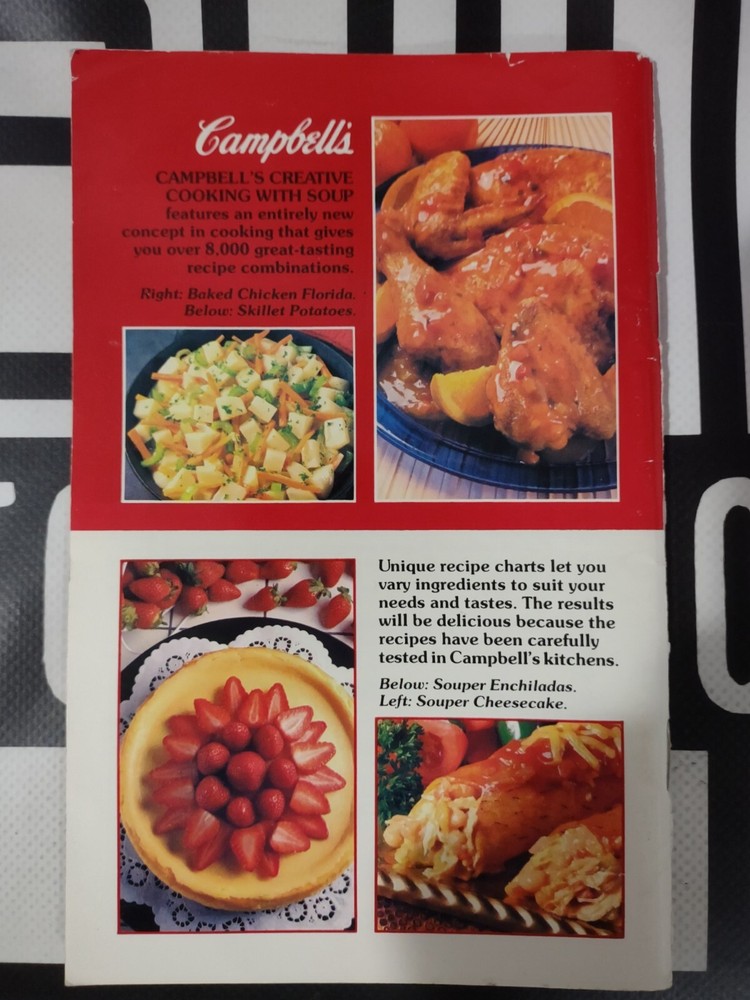 Campbells Creative Cooking With Soup 8000+ Delicious Mix & Match 1985 Paperback Book is in good condition. The covers and spine have minor wear, have scratches/scuffs/marks/dirty, and some of the corners/edges are peeling up. The inside looks good. I'll be happy to combine shipping on items as long as they are in the same order. Please let me know if you have any questions, and have a CRAZY day!