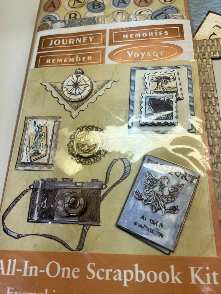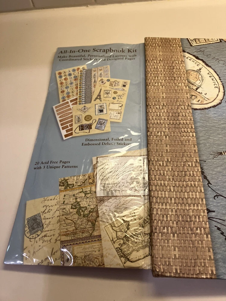 All in one travel scrapbook kit 12.50”X13.75”. 10 top loading sheet protectors. Pre owned in new condition. No visible defect stains spent corners tears are rips visible to the eye or the touch. Please see all photographs as they are part of the description and as always there is a 100% no hassle moneyback guarantee.
