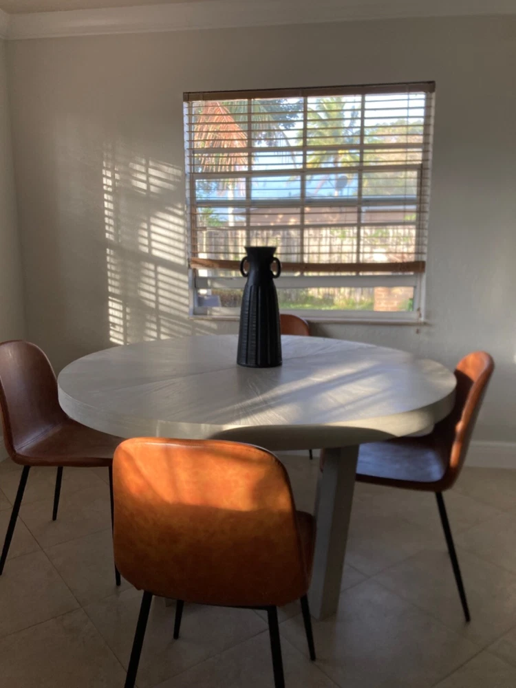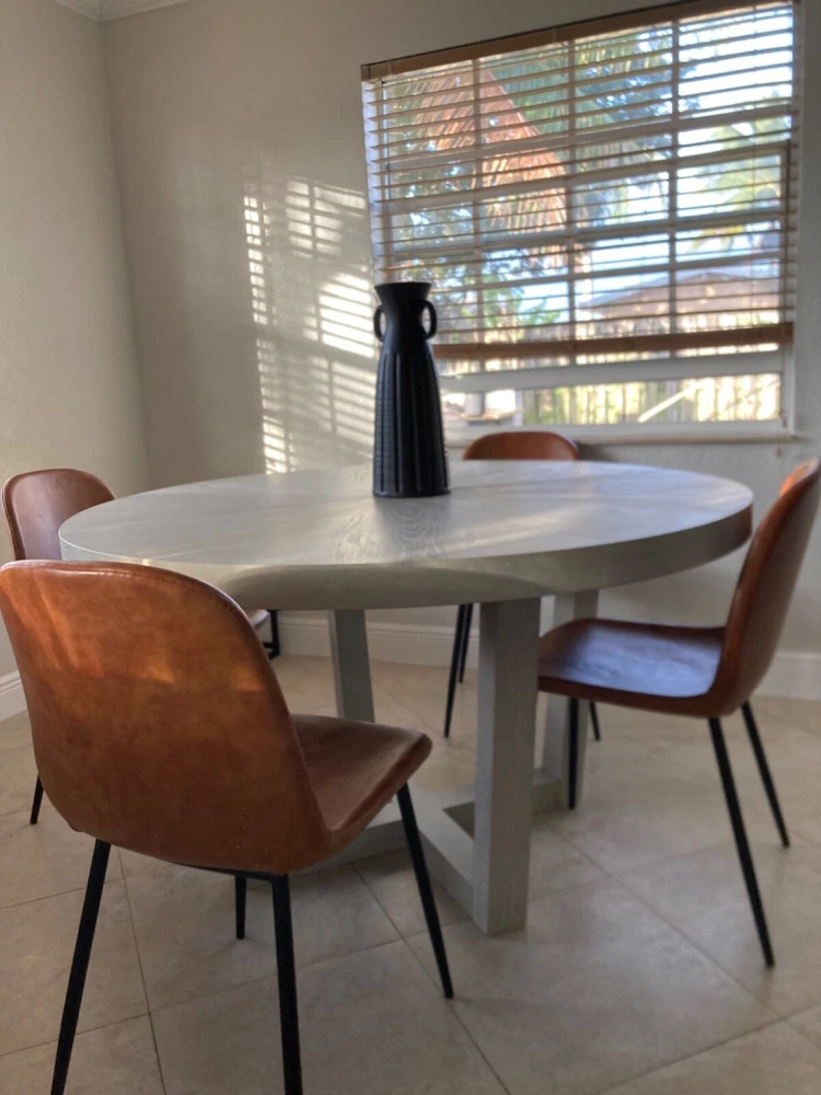 This dining table is a game-changer! The sleek design and extendable feature make it perfect for both everyday meals and hosting guests. The spruce finish adds a modern yet warm touch, fitting seamlessly into any decor. Sturdy, stylish, and super functional—love how it transforms to fit any occasion. A must-have for anyone who loves to entertain!